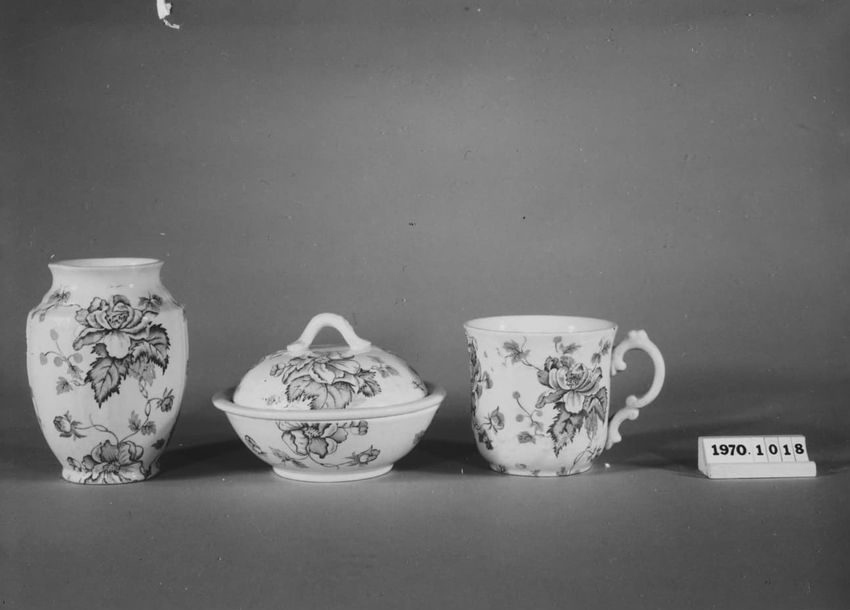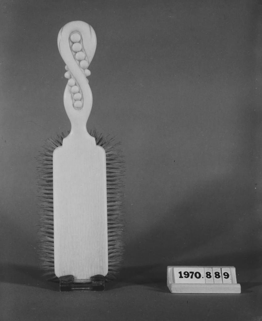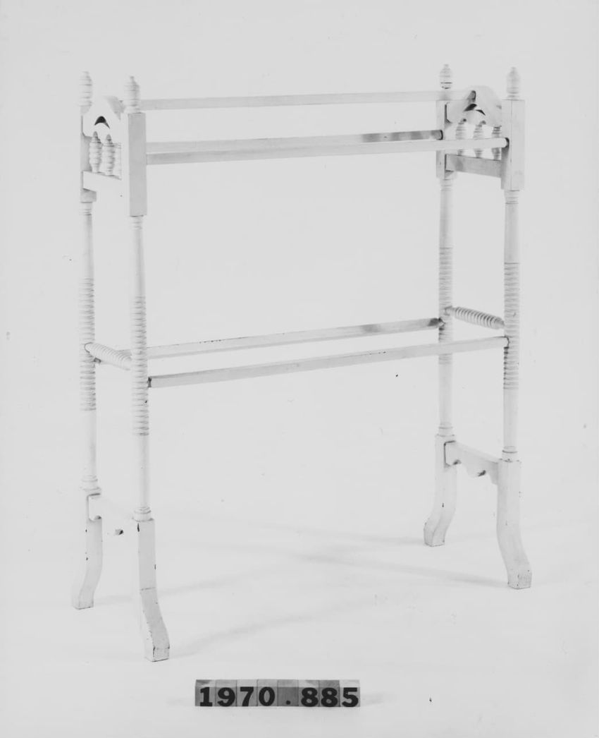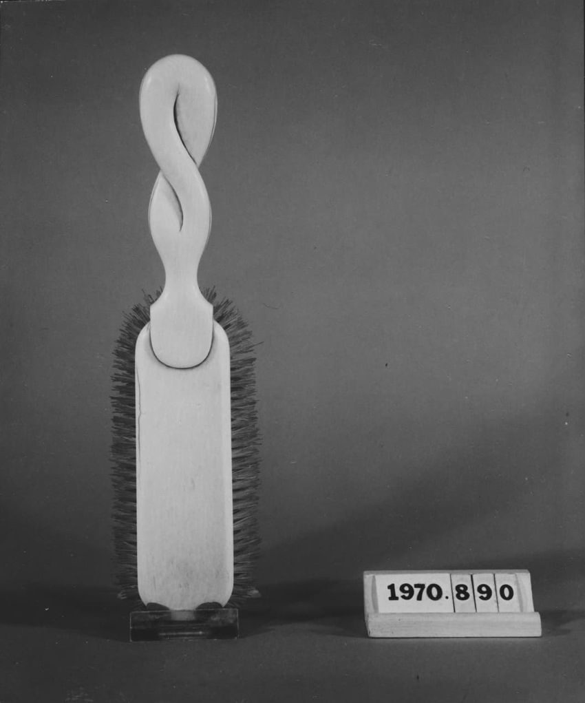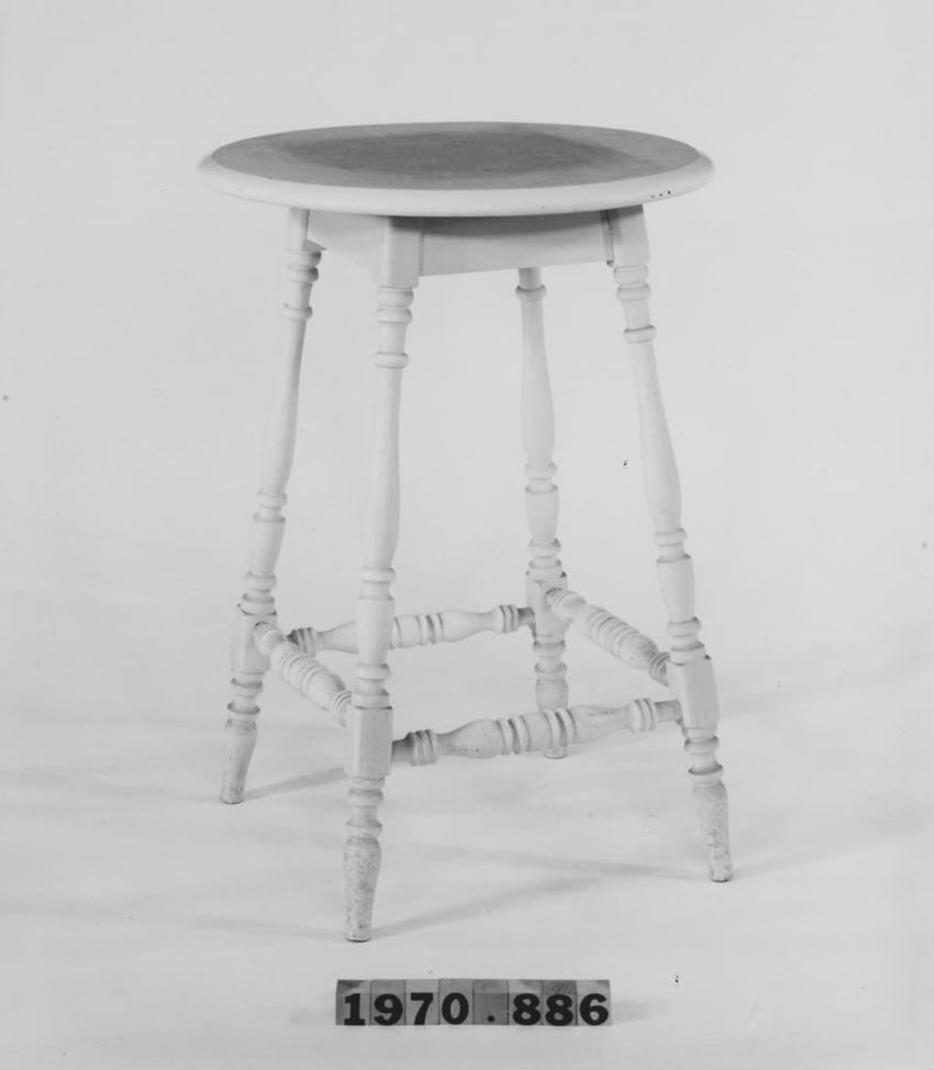 ash (wood), graining, oak (wood), rush (material), tulipwood (Brazilian, wood), turning (shaping process)