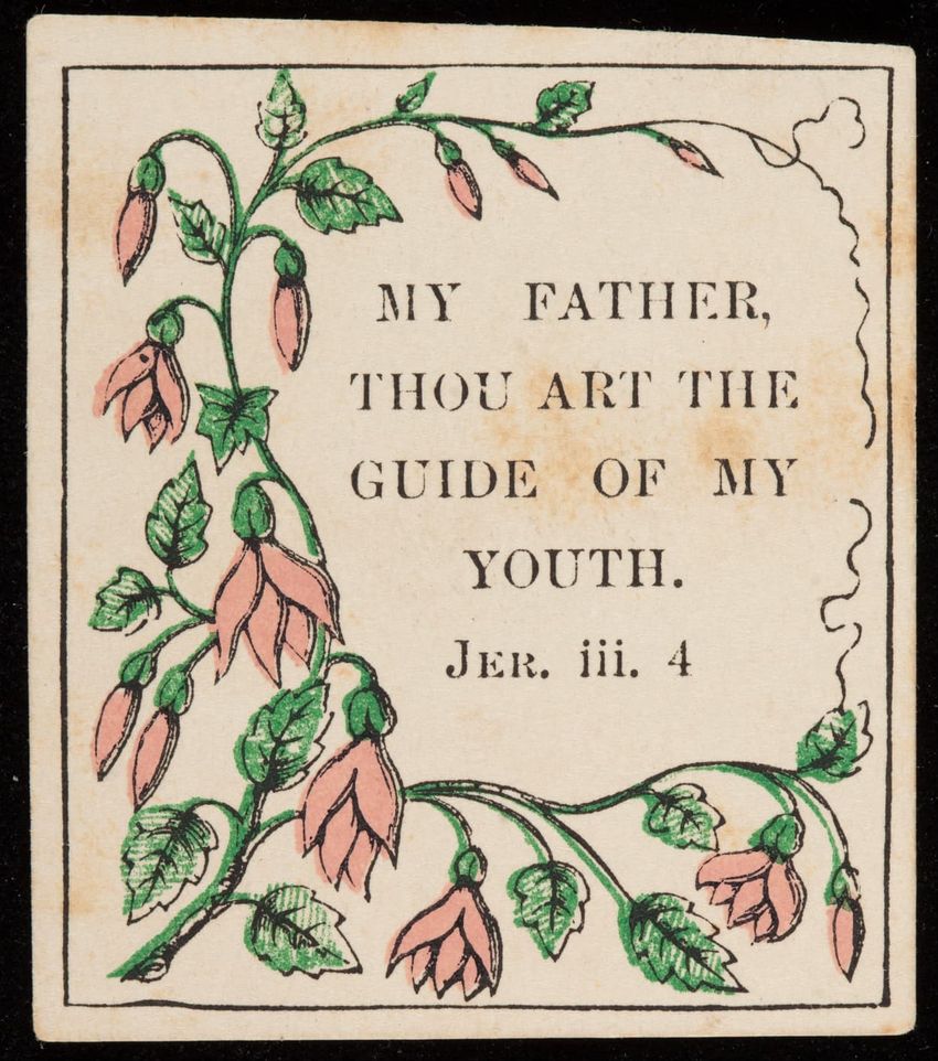 A Bible verse from Jermemiah 3:4 is on the card.
