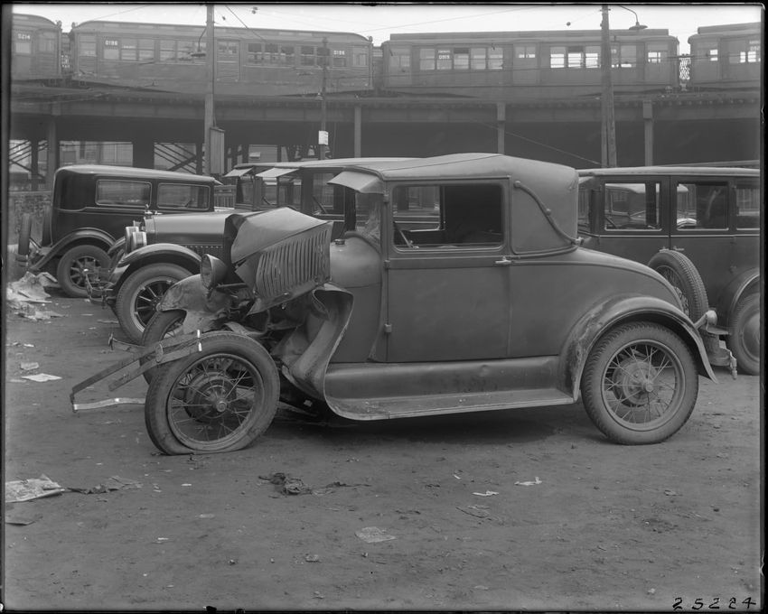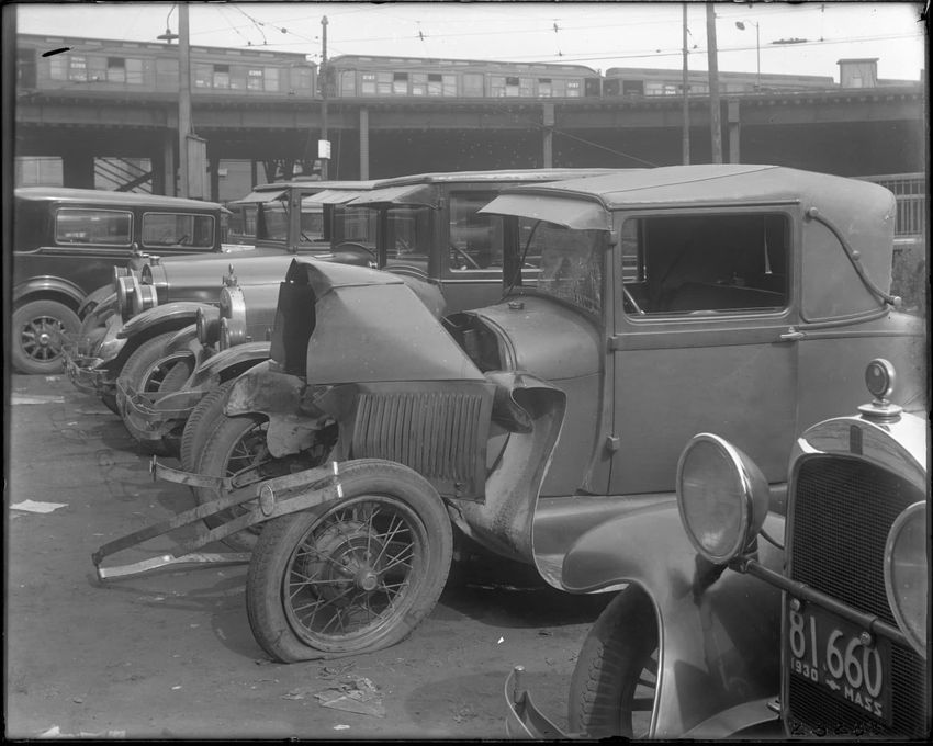 Ford Coupe Mass Re. 699-115 Car wrecked. Other cars.