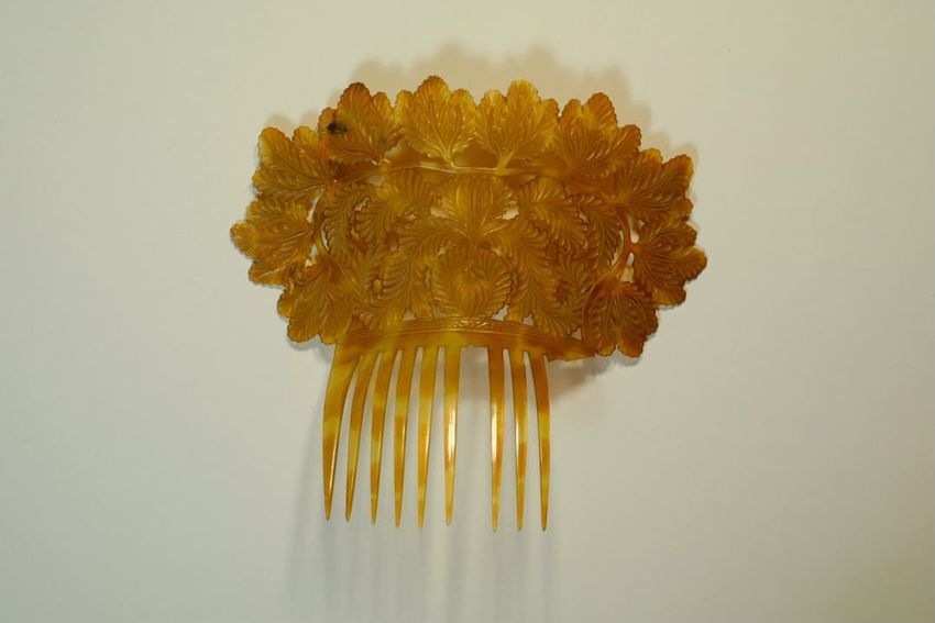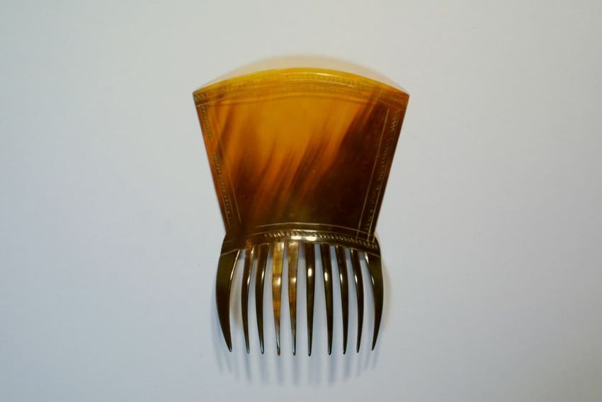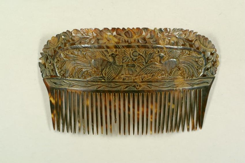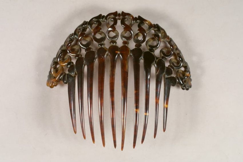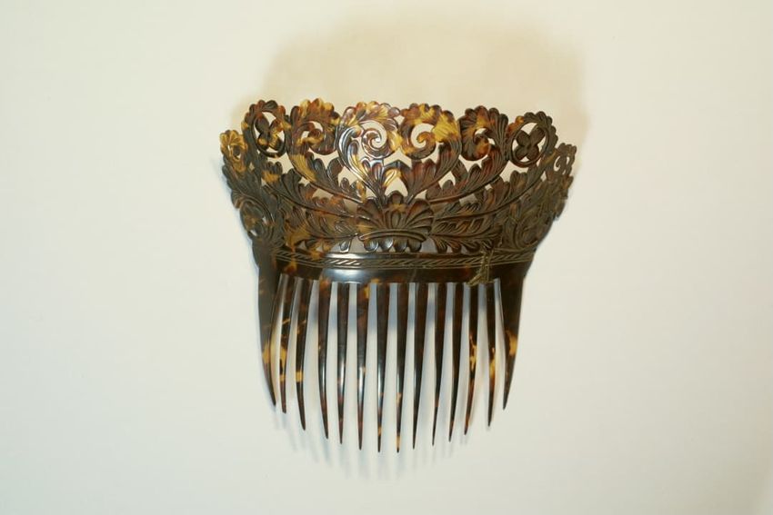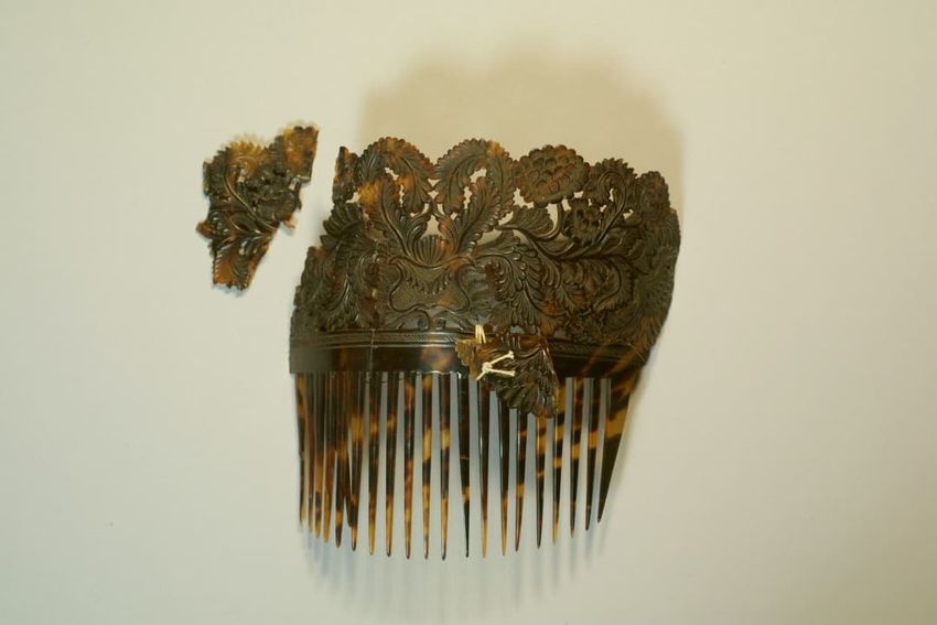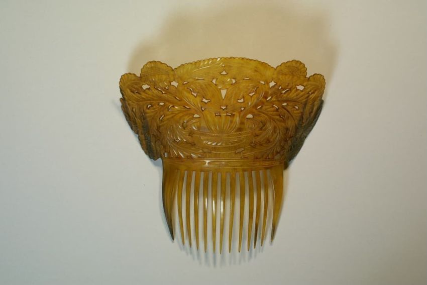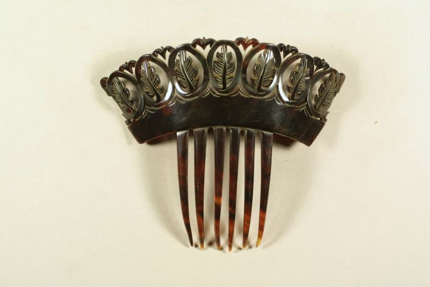 This shield-shaped gold pin is embellished with a roaring lion in the center, surrounded by the French phrase "DIEU ET MON DROIT," which is the motto of the British Royal Family.