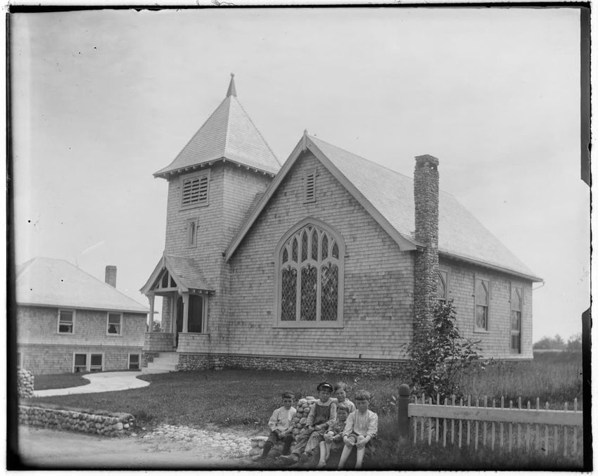 Trade card advertising a house that can be built by the Edward Chappell Company, a company based in Norwich, Connecticut. There is a calendar for April 1905-March 1906. The card verso has the floor plans for the house with the dimensions and cost. The plans can be purchased from William A. Radford f...