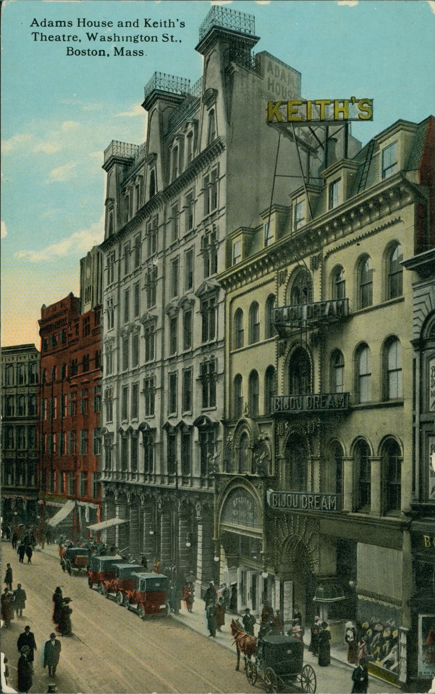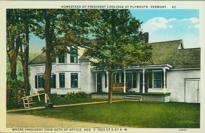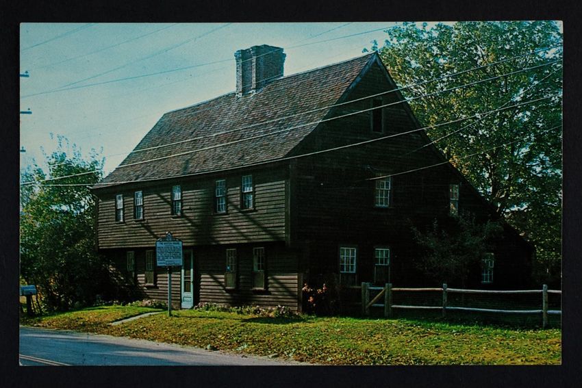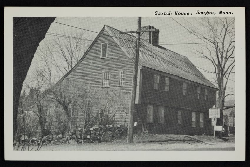 Handwritten text on the item verso reads "On the left is the house where John Adams lived after he was married. The one on the right is where he was born. It was built in 1681. These two houses are on the corner of Presidents Ave. and Independence Ave., Quincy, Mass. Purchased 23 March 1925 for $1, ...