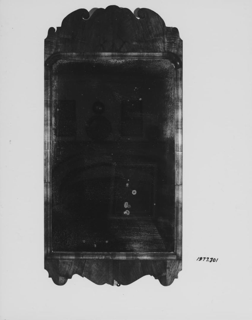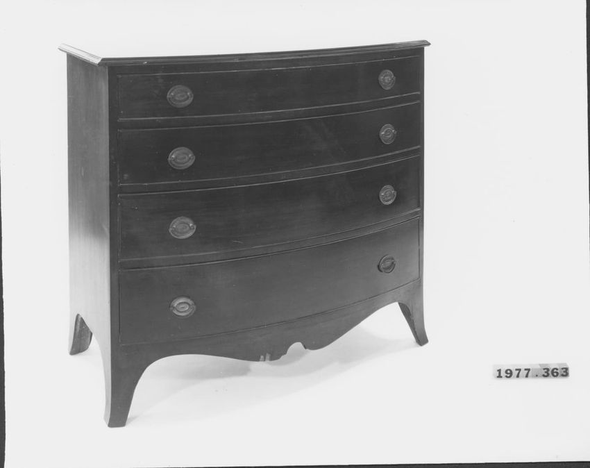 Dressing table. Black walnut, hard maple case back; sumac, red oak, white pine, and elm. Scalloped skirt. Three drawers directly under top with no rail between. Rests on cabriole legs, the rear of which face forward. Original brass hardware. Never had locks.