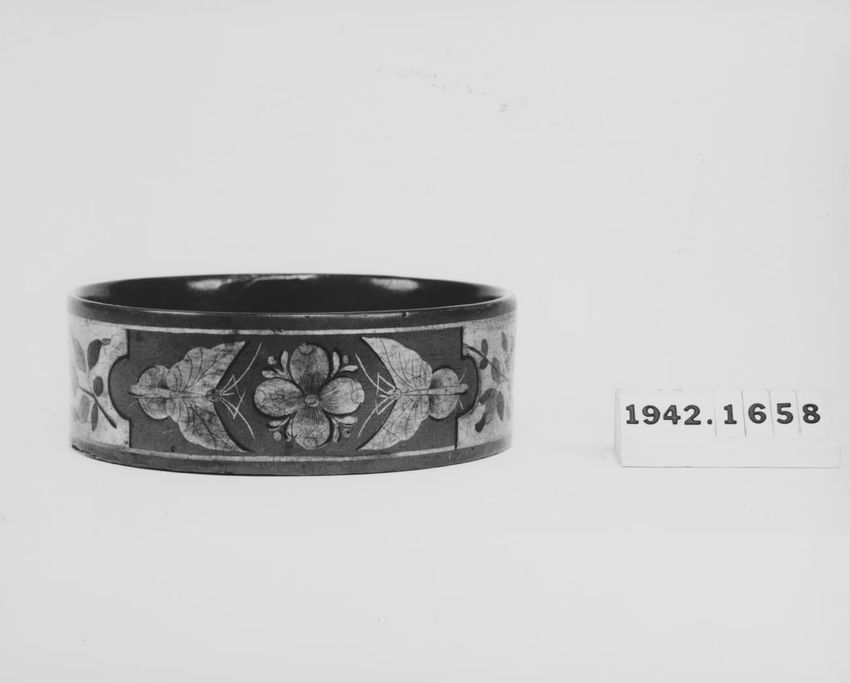 Blue, white, multicolor, and gilt cream pitcher with a circular body, branch-like feet, a spout, an ear-shaped handle, and decoration of flowers and birds. Part of a tea set.