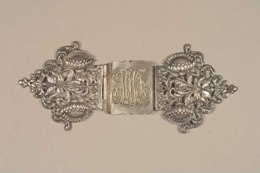 Printed silk chiffon; pastel paisley border, with satin stripes, in pinks, blues and greens; cream center, scrolling meander with narrower border of "patchwork" pattern, ends are cream with row of faggoting.