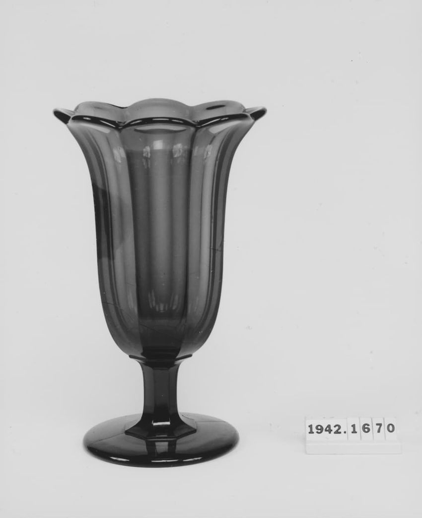 Amethyst; loop pattern with 7 lobes; acorn shp. finial on cover.