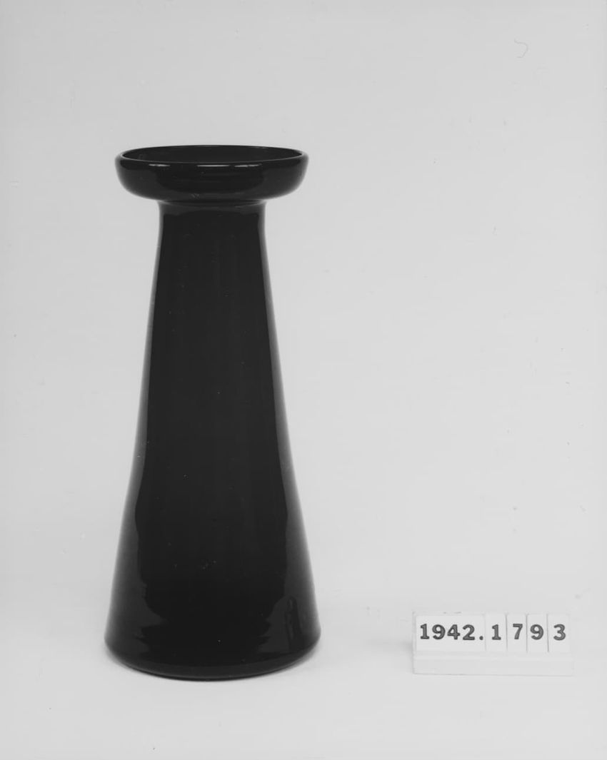 Black amethyst vase, conical shaped bowl with waist and flaring base.