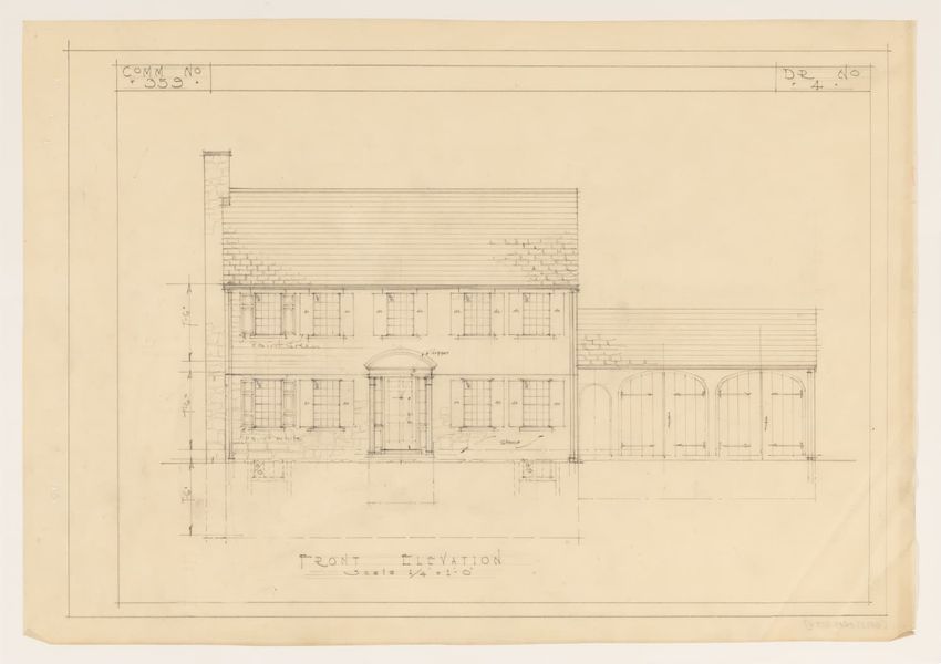 Set of forty-five architectural drawings of house for E. Carlisle Baker in Brookline, Massachusetts (commission #350) including four elevations, five plans, two framing plans, one plot plan, two cross sections, three landscape plans, and twenty-eight details. Many details are dated; many are also si...