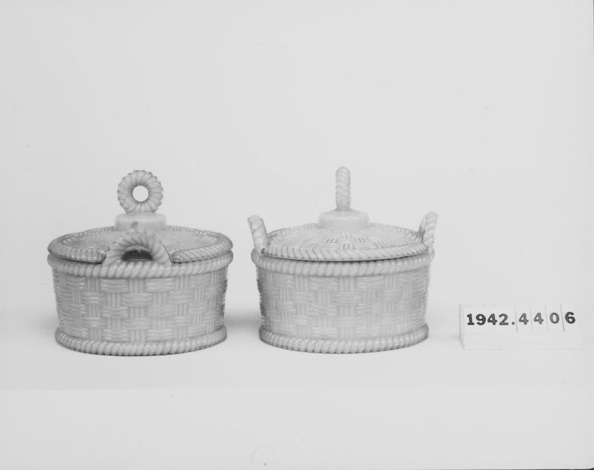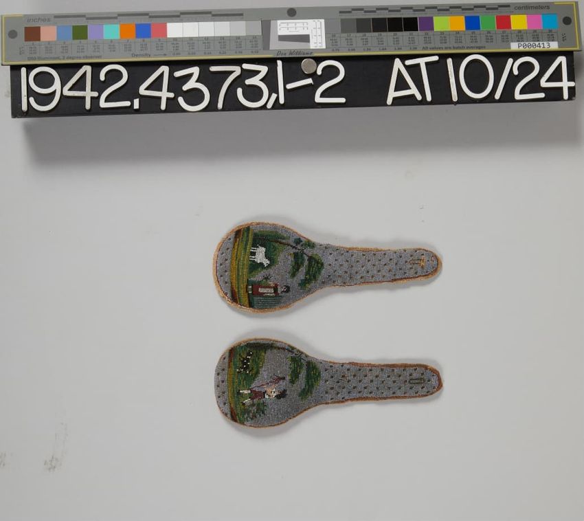 Overshot wool coverlet. Double woven reversible design woven in red, blue, pale green, and tan. Central floral wreath medallion at center atop a square lattice work patterned background. Floral wreath border. Red, blue, green, and tan fringe.