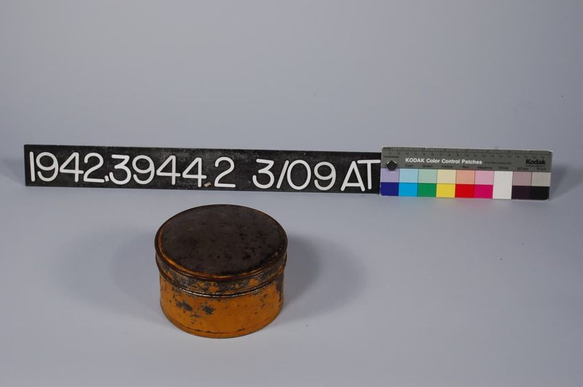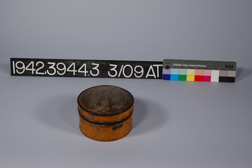 Ochre; circular with domed hinged lid