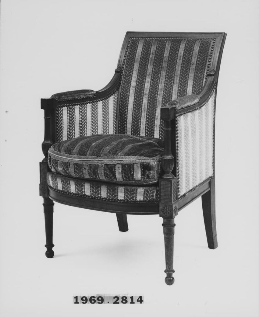 Material: caning, leather, painting (coating), textiles, wood (plant material)