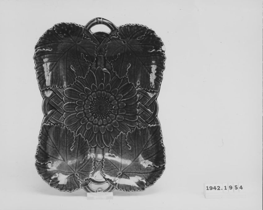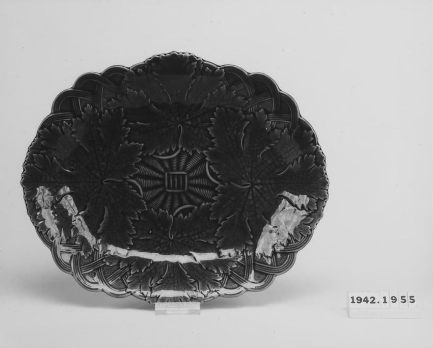 Emerald gr; oval, deep well, scallpd. edge; basketweave, grapelvs.