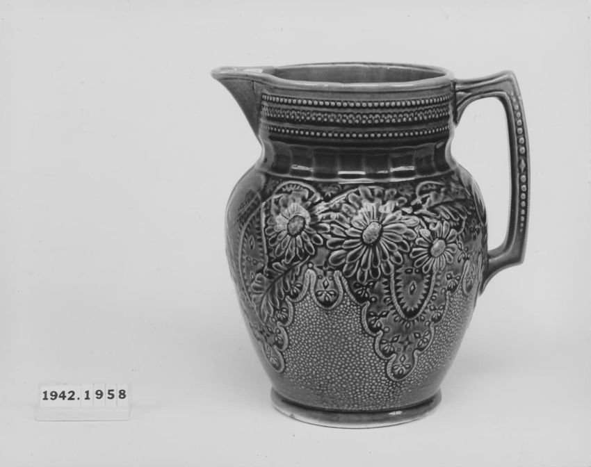 Emerald gr; balustr body; rectangular hndl; daisy & stipple with beaded bnd