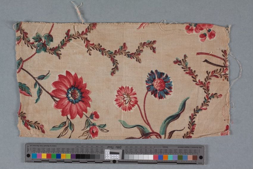 calico, glazing (coating), stitching, machine sewing (technique), printing (process), rolling up, tin (metal)
