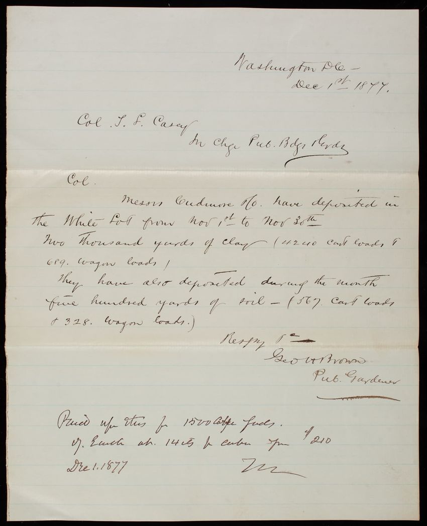 [George] Brown to Thomas Lincoln Casey, December 1, 1877