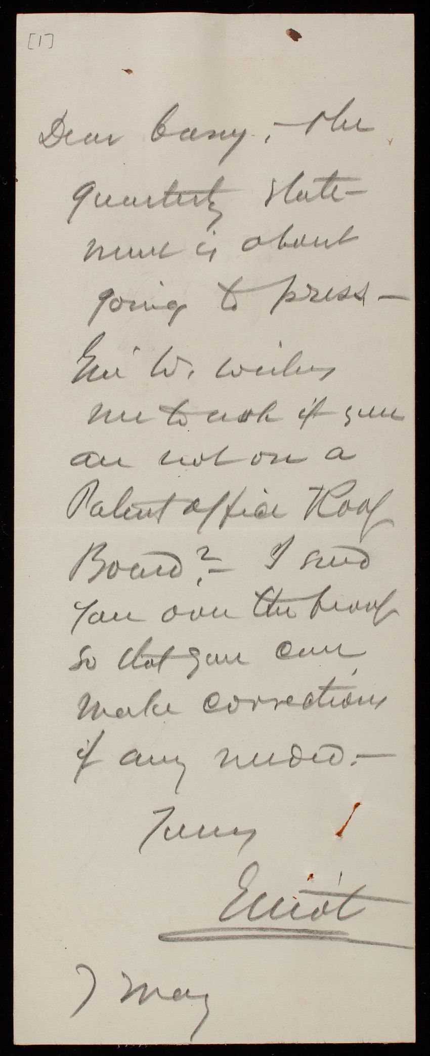 [George H. Elliot] to Thomas Lincoln Casey, May , 1890