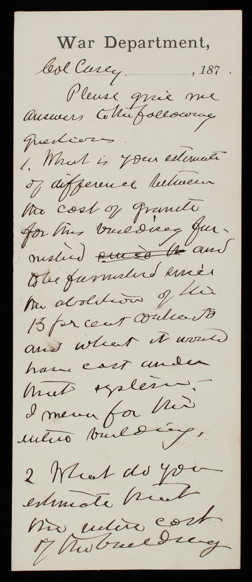 [George W. McCrary] to Thomas Lincoln Casey, rel. to certain estimates, undated [1879]