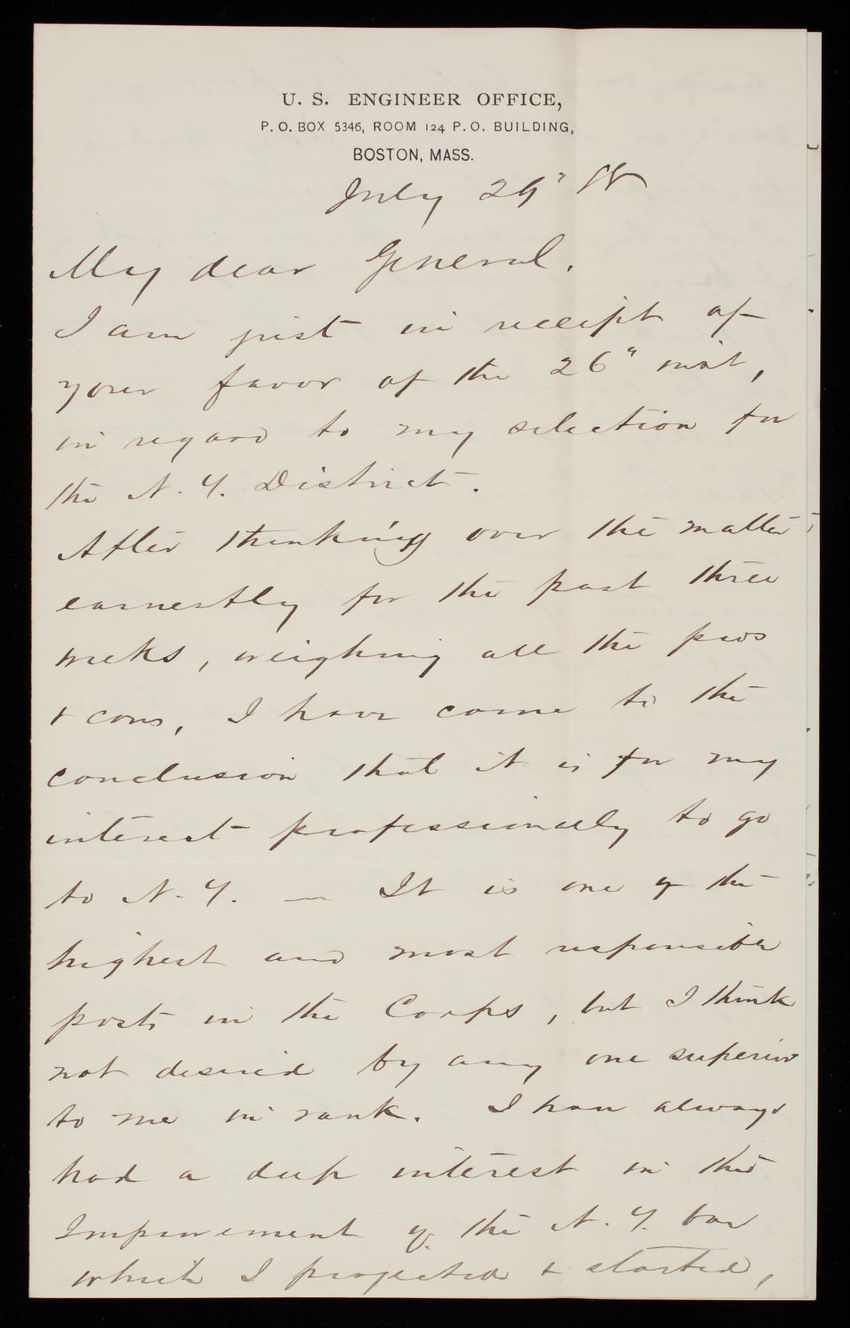 [George Lewis] Gillespie [Jr.] to Thomas Lincoln Casey, July 29, 1888