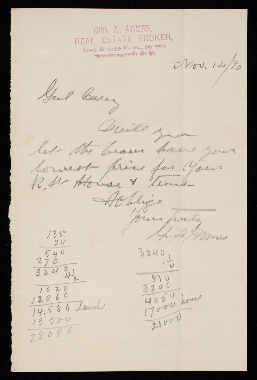 [George] A. Armes to Thomas Lincoln Casey, November 14, 1890