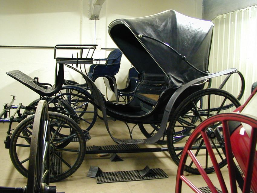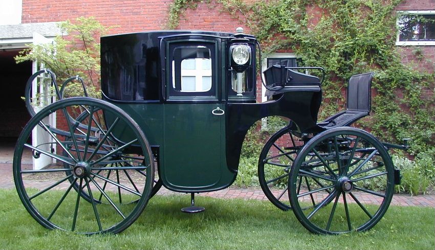 Limousine with enclosed body. Painted black with chrome trim and monogrammed "SWP" doors. there are four doors and one trunk. The driver's and passenger windows are made of early safety glass, which has discolored and frizzled. The chrome archer mascot in the center of the hood is missing his bow an...
