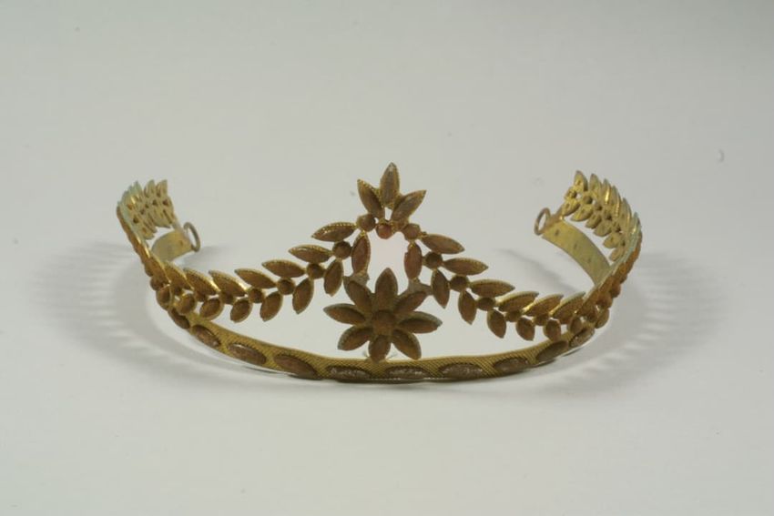 This shield-shaped gold pin is embellished with a roaring lion in the center, surrounded by the French phrase "DIEU ET MON DROIT," which is the motto of the British Royal Family.