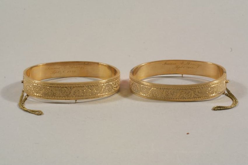 Cream cotton; shoulder straps (reinforced with twill tape) & neckline have scalloped embroidered edges; front neck embroidered with scrolling floral garland; holes around neckline for drawing ribbon/drawstring; drawstring at waist, blouson effect with narrow tucks at waist front; four buttonholes; a...