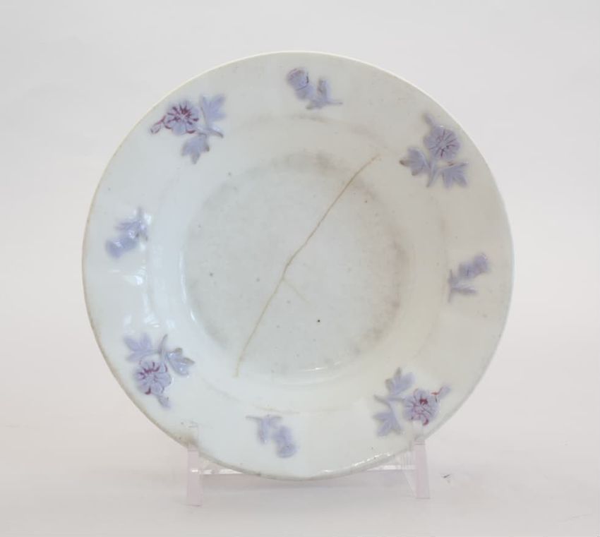 Crystal wine decanter with round body with cut fluting and a row of circles, flat bottom with cut hobstar, faceted neck with flared sterling silver rim with repoused vine and berry design.