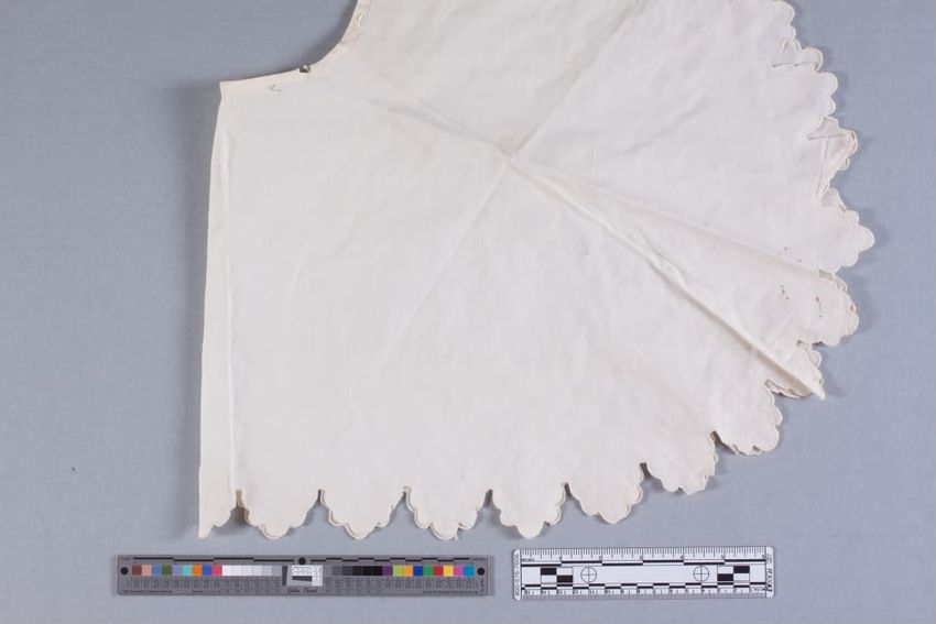 White plain cotton cape collar with a scalloped edge.