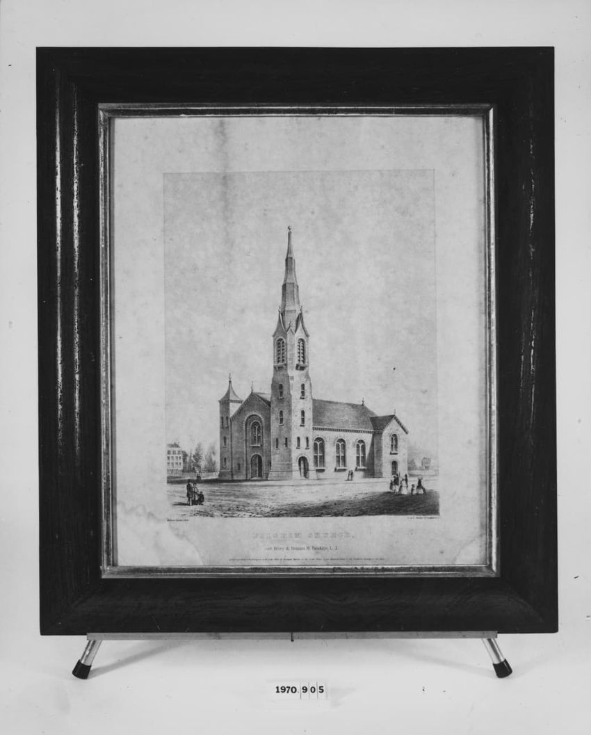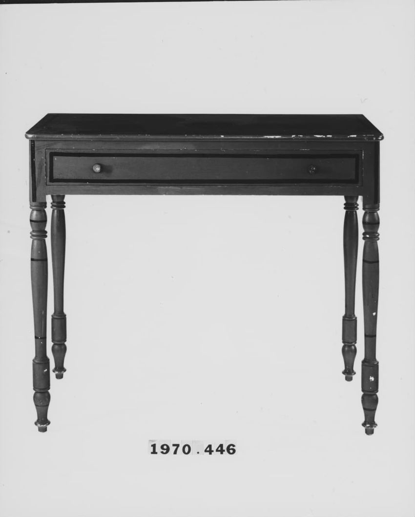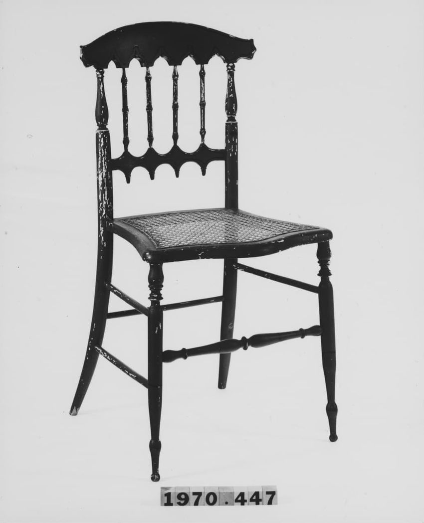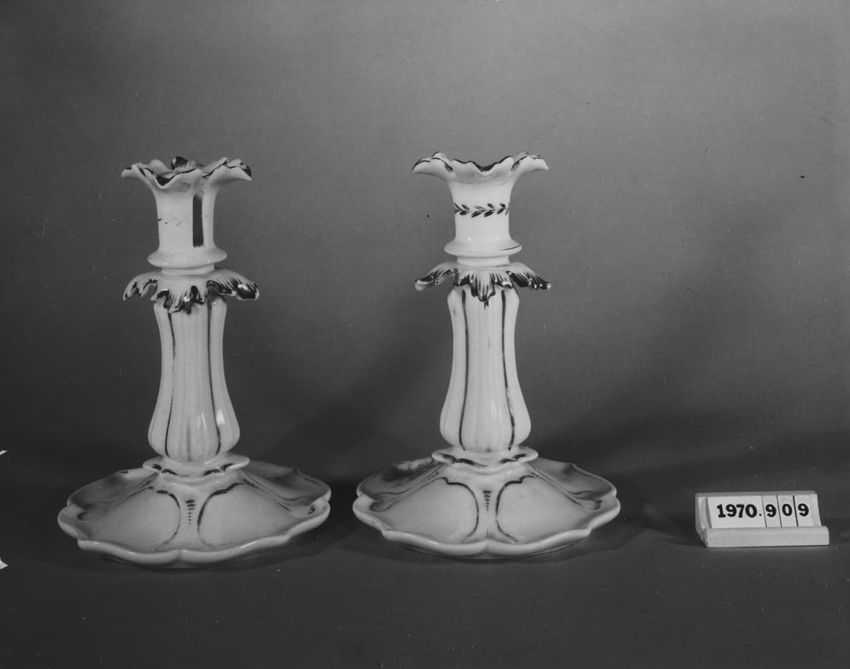 Chinoiserie with floral basket motif; block printed in two blues, olive, green, orange, black, gold, white, and gray on gray ground and embossed with vertical roping texture. Set with border - 1970.515