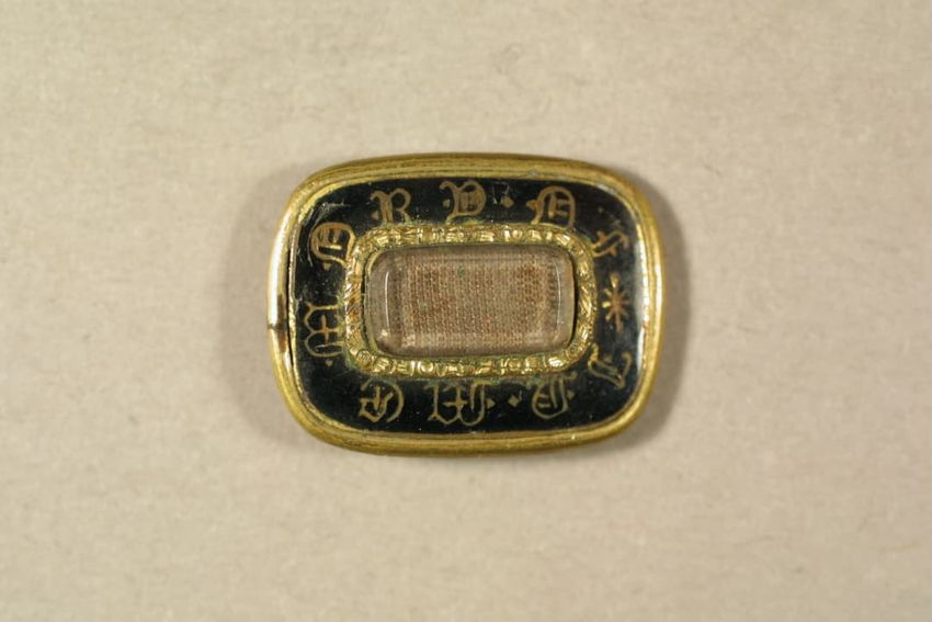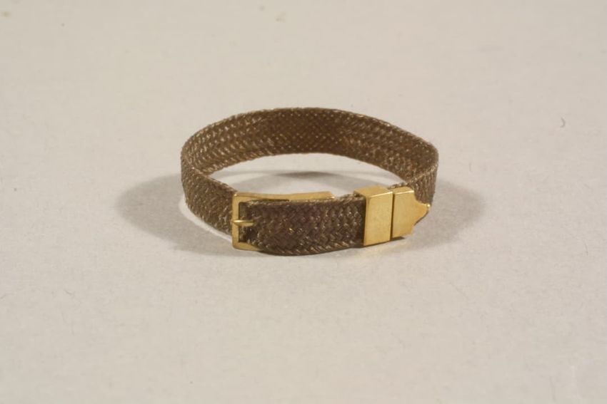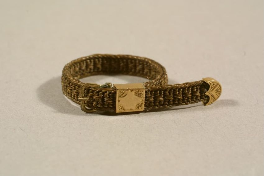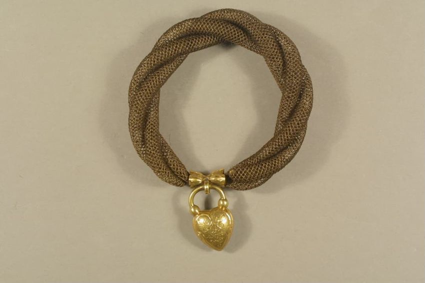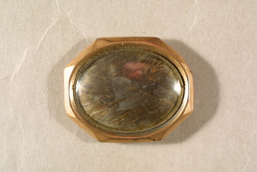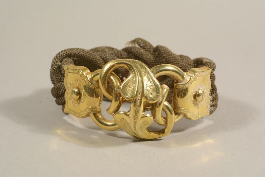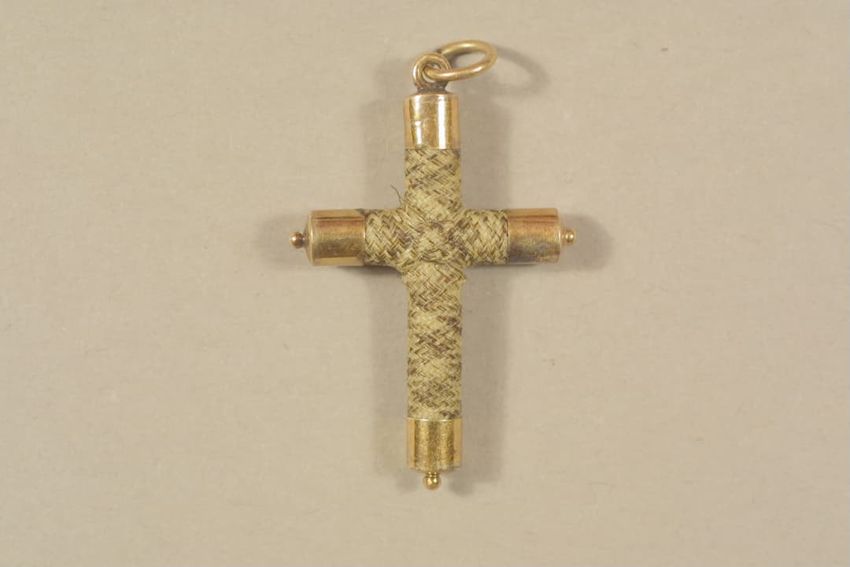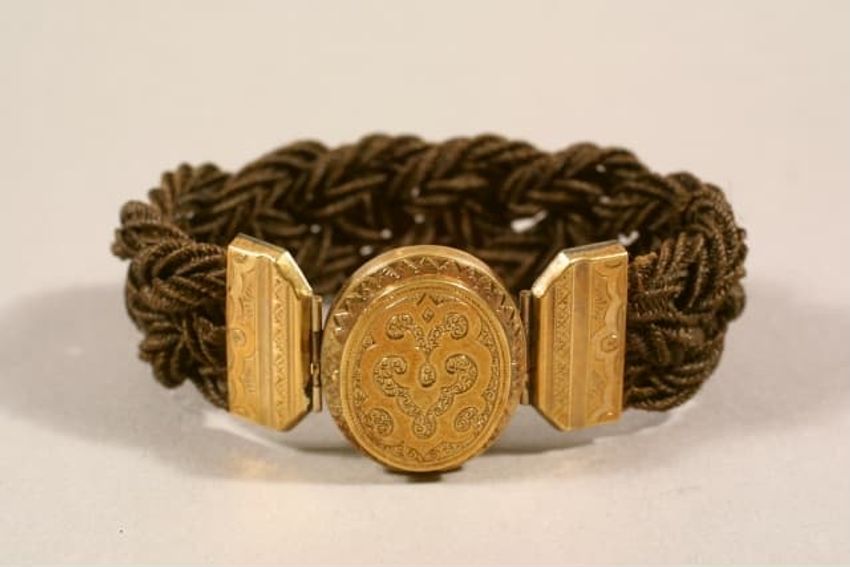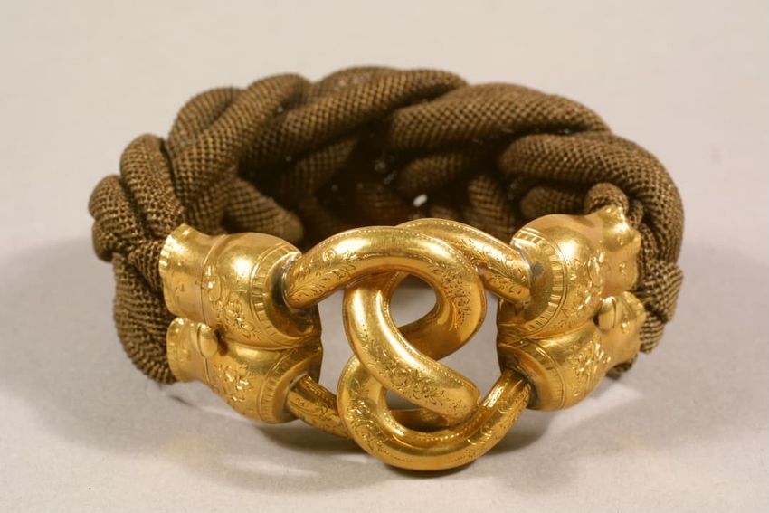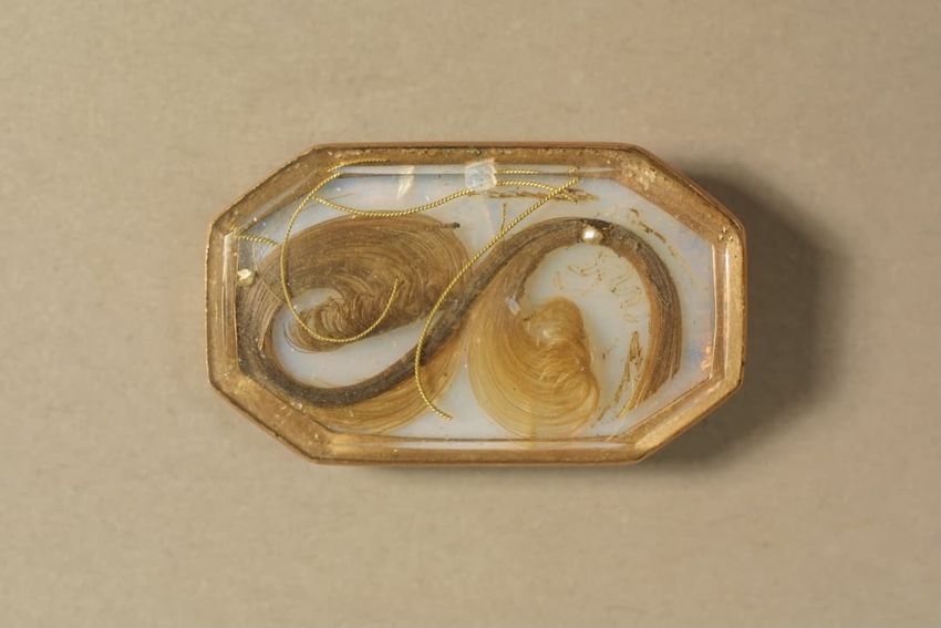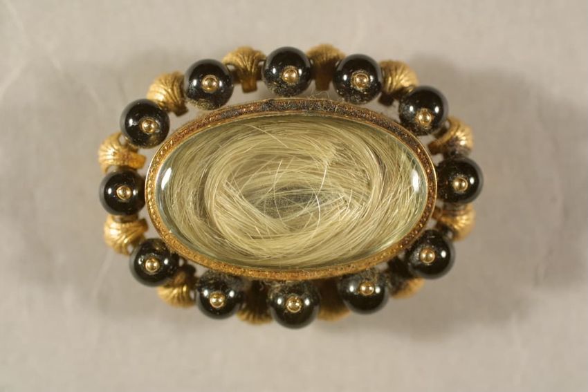 glass (material), gold (metal), human hair, ivory (tooth component)