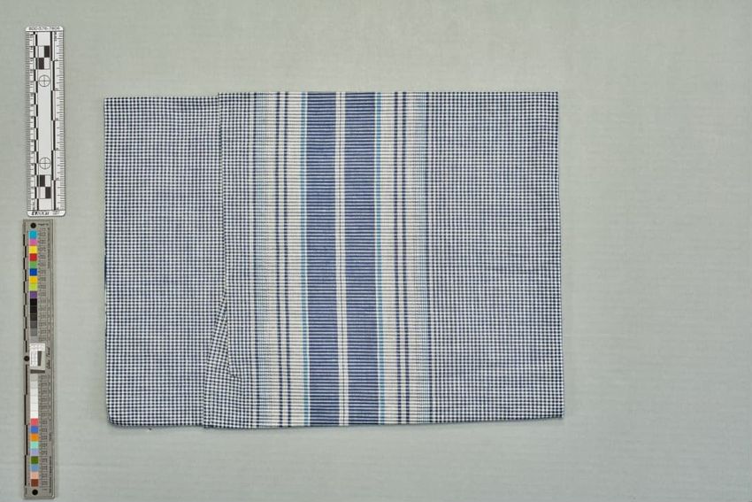 stitching, machine-made, net (textile), printing (process), taffeta, wool (textile)