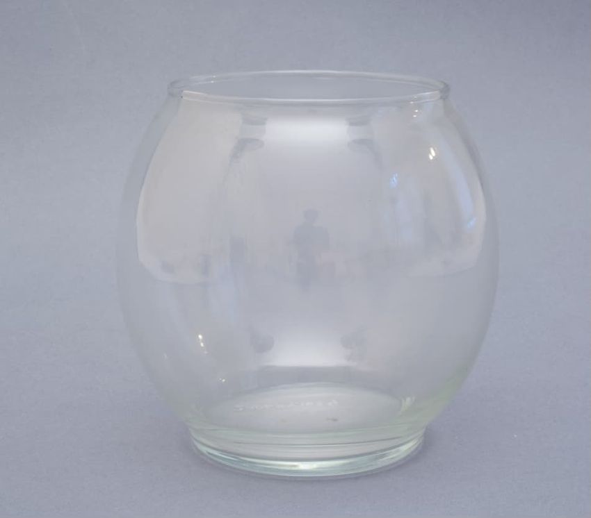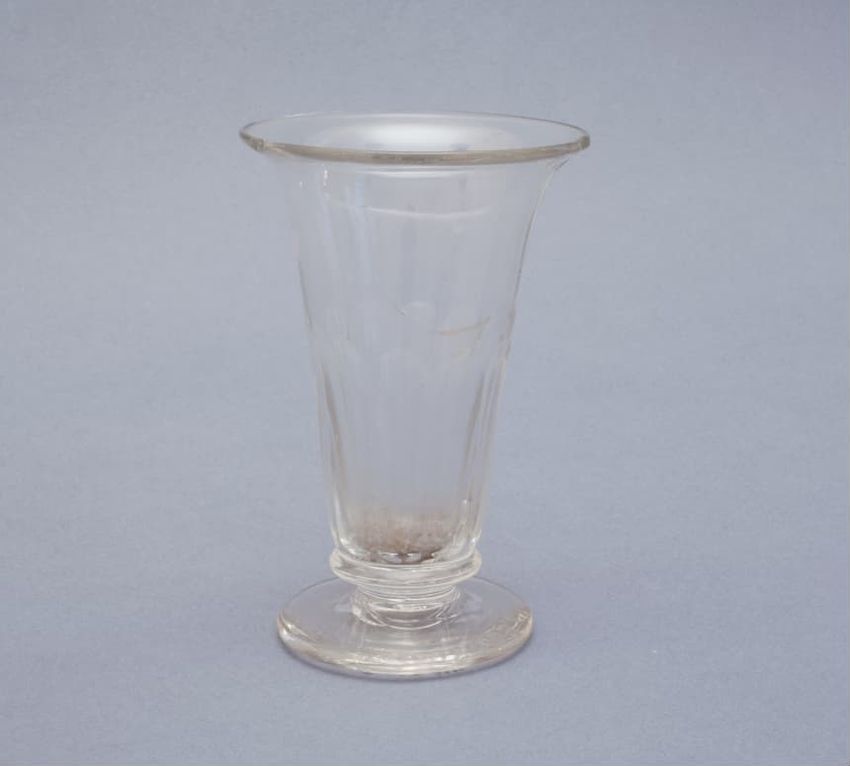 Clear glass footed dessert glass with fluted sides. Slightly flared rim.