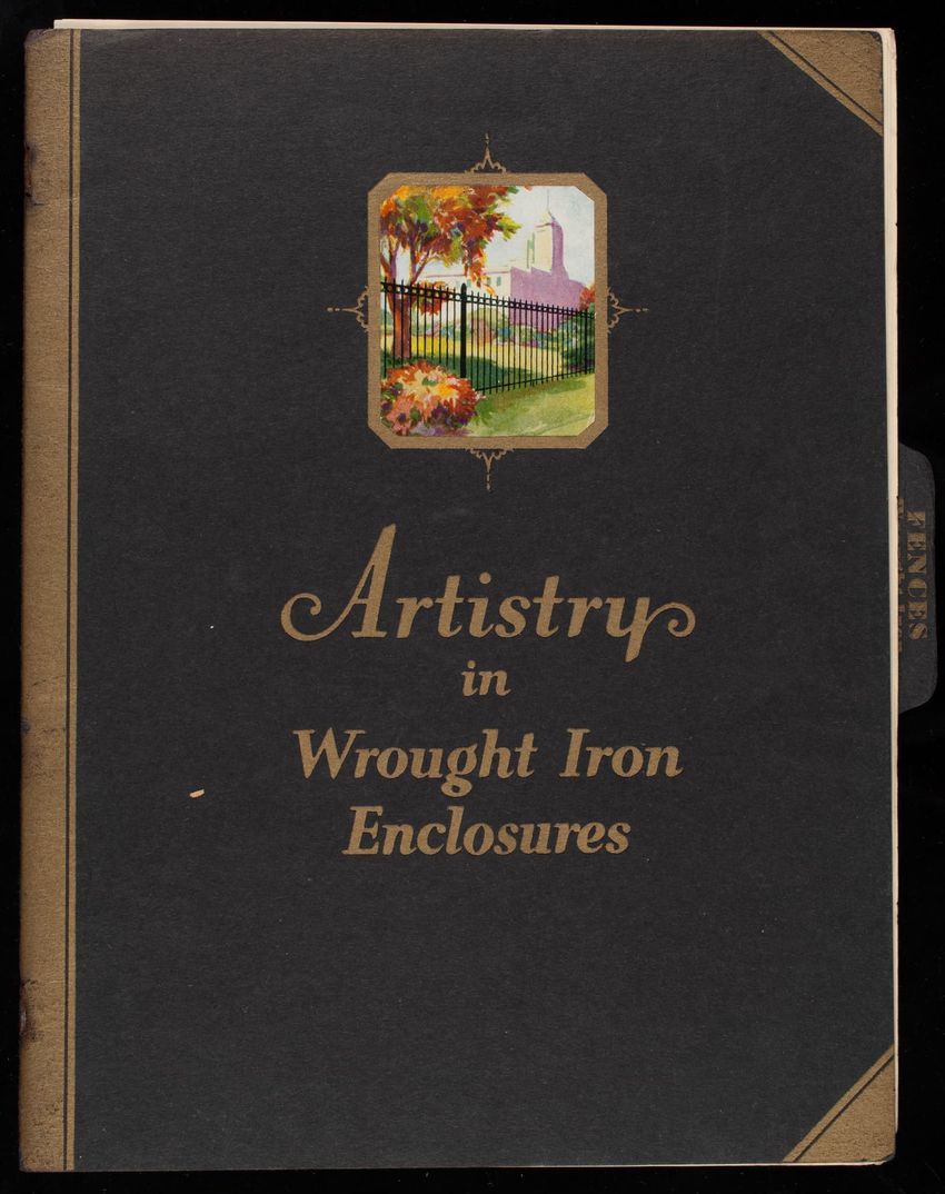 Wrought iron fence styles are shown in front of buildings and properties around the country. The product is distributed by Bancroft & Martin Rolling Mills Company, South Portland, Maine