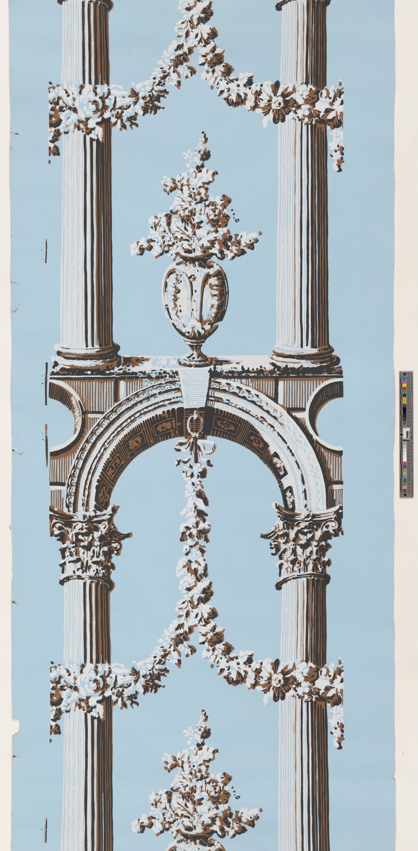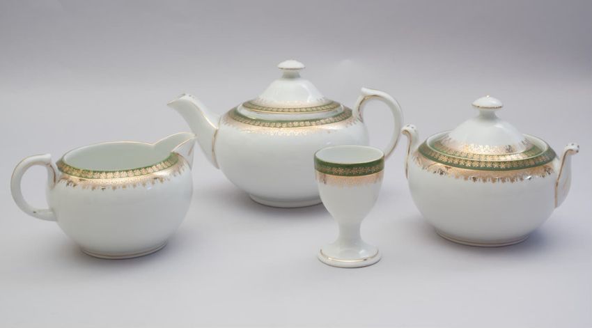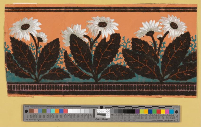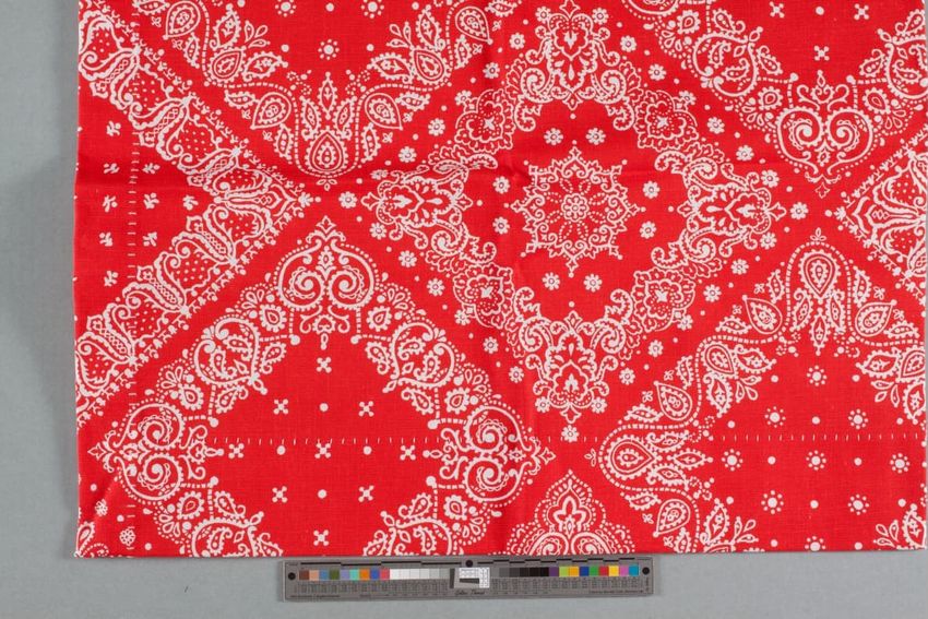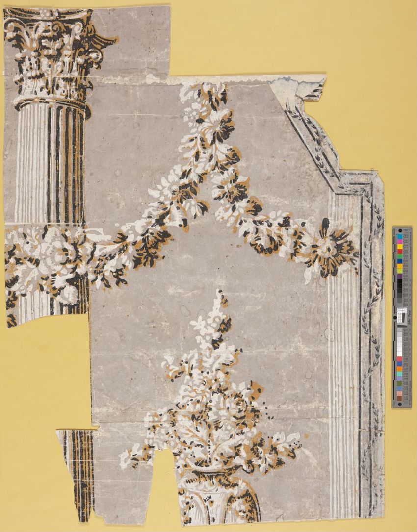 Writing set including three red-orange pieces of sealing wax, two black pieces of sealing wax, two metal wells with copper tops (one well with lid, one well with perforated top), one wood pencil with metal fasteners. Five metal quill tips, and a menagerie of colored circles of dried ink. All housed ...
