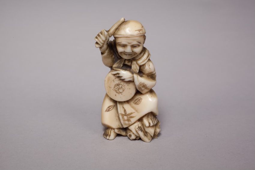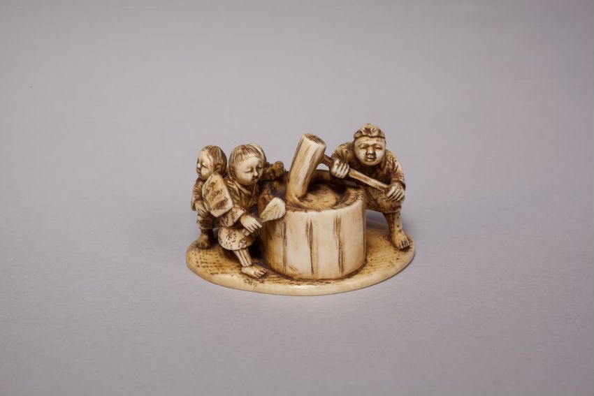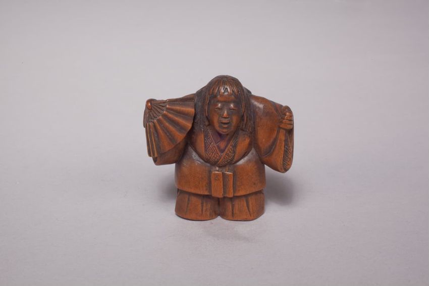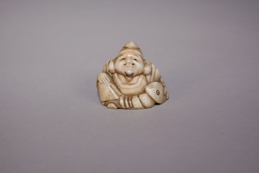 Maori greenstone (pounamu) hei tiki, or human figure pendant, with paua shell eyes, from New Zealand/Aotearoa, The head of the figure is tilted to the right with the hands resting on the thighs. Worn by both men and women, hei tiki are highly valued personal adornments and family heirlooms, passed ...