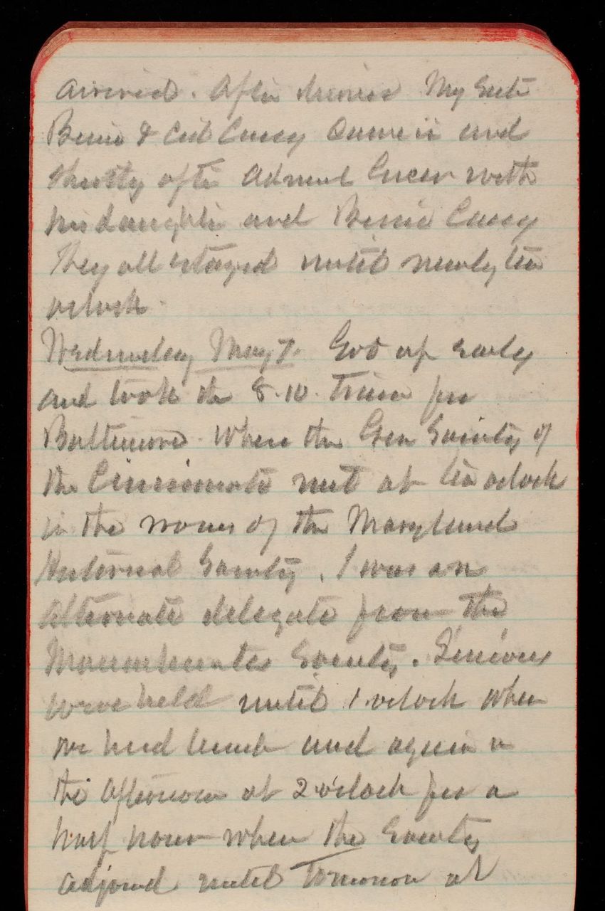 Thomas Lincoln Casey Notebook, April 1890-June 1890, 27, arrived after dinner. My sister Bessie