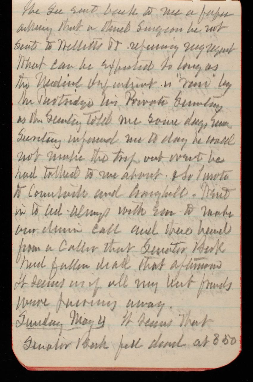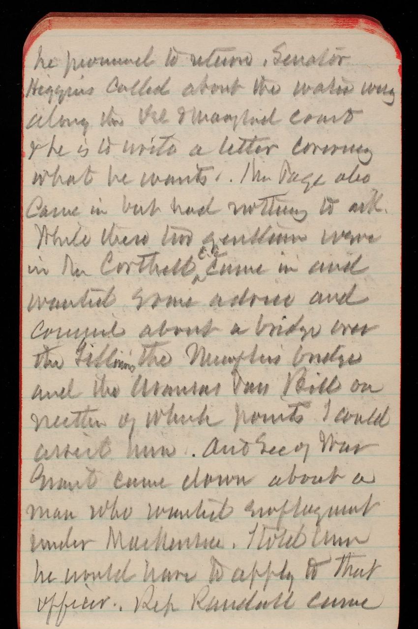 Thomas Lincoln Casey Notebook, April 1890-June 1890, 33, he promised to return. Senator