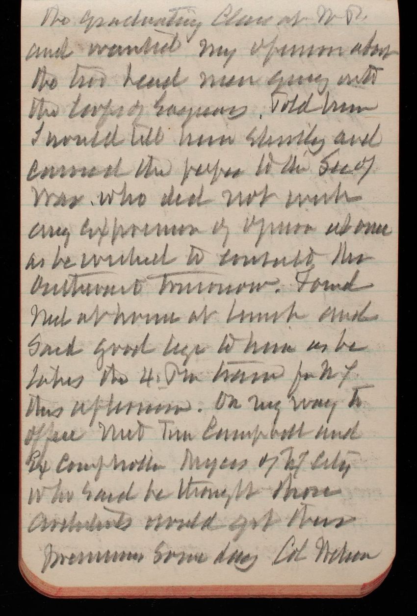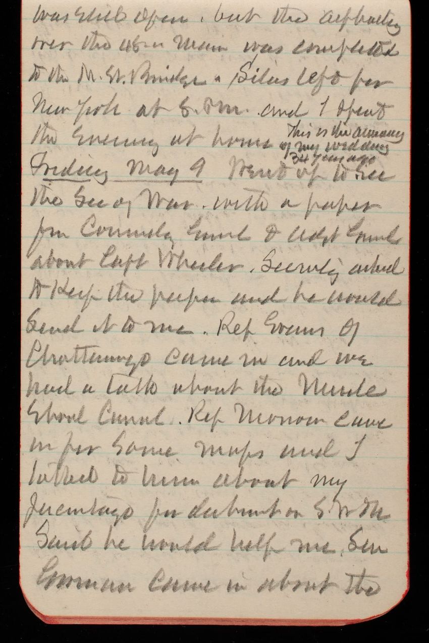 Thomas Lincoln Casey Notebook, April 1894-July 1894, 66, Saw the Sec of War and asked him