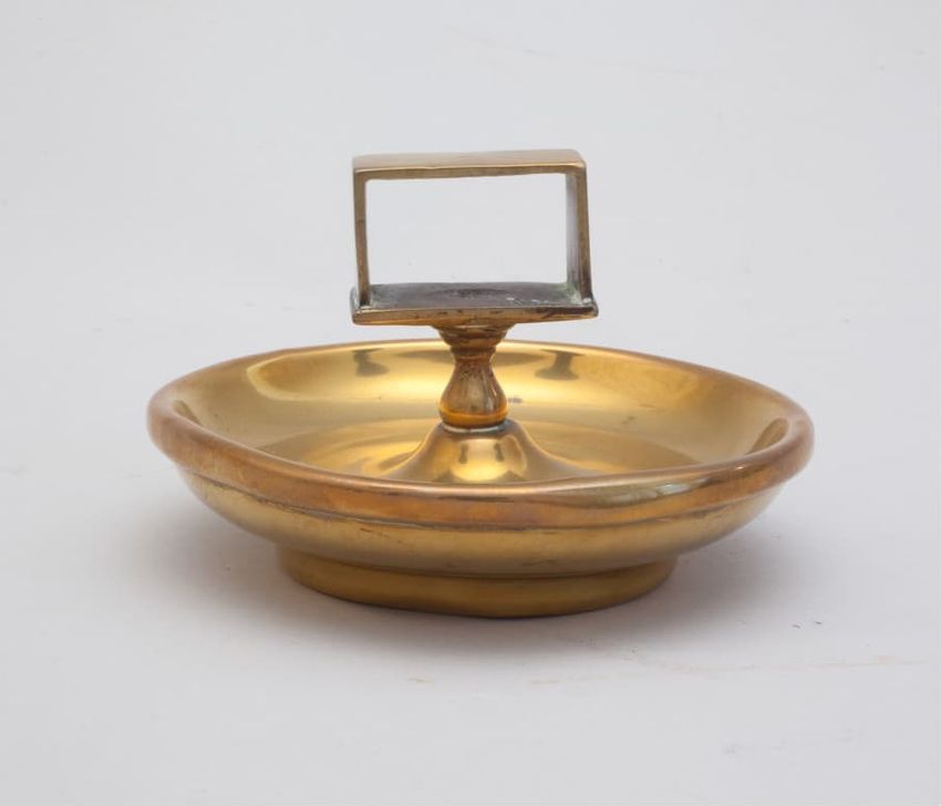 Unused wallpaper sample. Repeating green parrots in two different poses, one bent over with wings splayed, the other standing straight on with wings splayed, among twisted vines of pomegranates, all on striped embossed gold ground. British paper "Cockatoo and Pomegranate" designed by Walter Crane an...