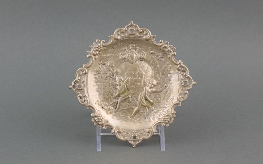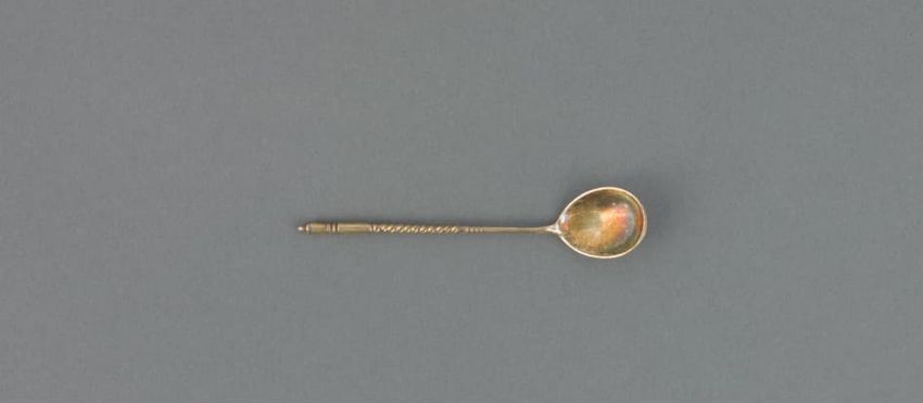 Large stoneware jug with oval body rising from narrow base. Loop handle. Light tan to gray glazed exterior with the following stamped under mouth: "SOLD BY JOSHUA DURGIN & CO, DRUGGISTS, NO 64 MIDDLE STREET, PORTLAND, 3." Stamped letters and number are tinted with blue glaze.