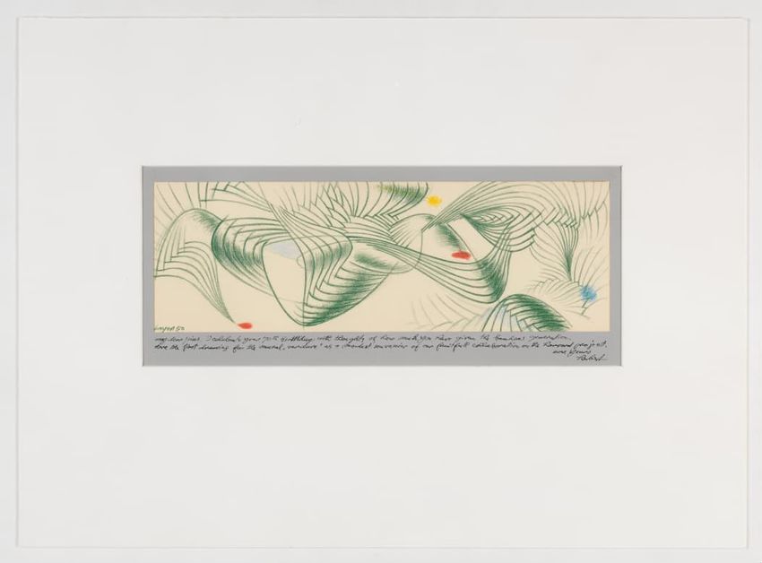 Silver bell, with a spindly handle. The exterior of the bell is engraved with several scenes and motifs, including a house, a tree, a yard, a fence, and a group of birds. Alongside there decorations, there is the inscription "Wife / from / Husband / June 6, 1860". Both the aforementioned pictures an...