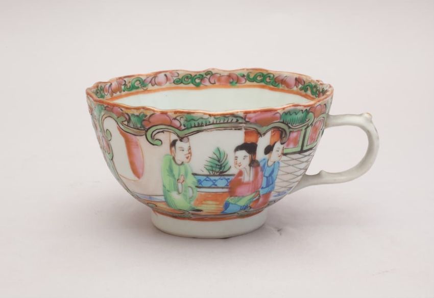 Bow-back Windsor (sack-back). With seven spindles through arm rail doweled into bowed crest. Three half spindles support knuckled carved arms. Broad saddle seat. Legs turned with bulb, ring; long vase and spool terminating with long taper, "H" stretcher with long center swell. Painted black with de...
