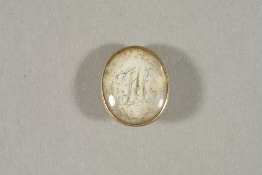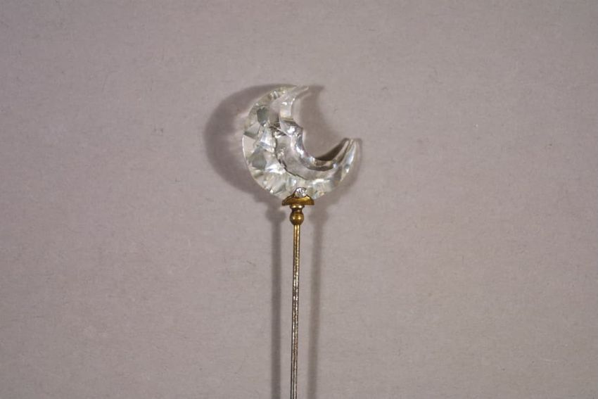 This shield-shaped gold pin is embellished with a roaring lion in the center, surrounded by the French phrase "DIEU ET MON DROIT," which is the motto of the British Royal Family.