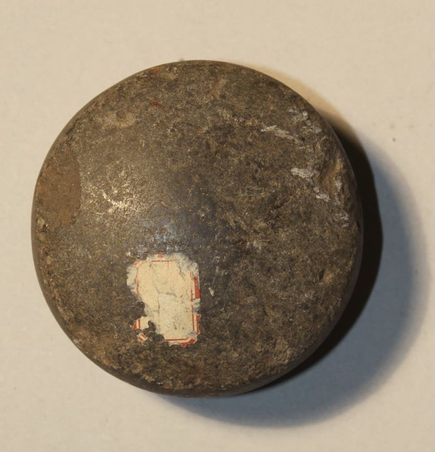 Hawaiian ulumaika, or game piece. Gray stone disc has a flat edge, convex top and bottom. The game of ulumaika was played on a prepared surface. The aim of the game was to throw or bowl the stone disc between two closely placed sticks without touching them.