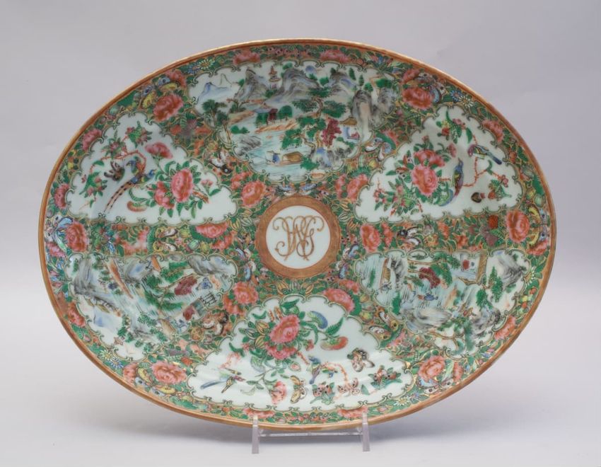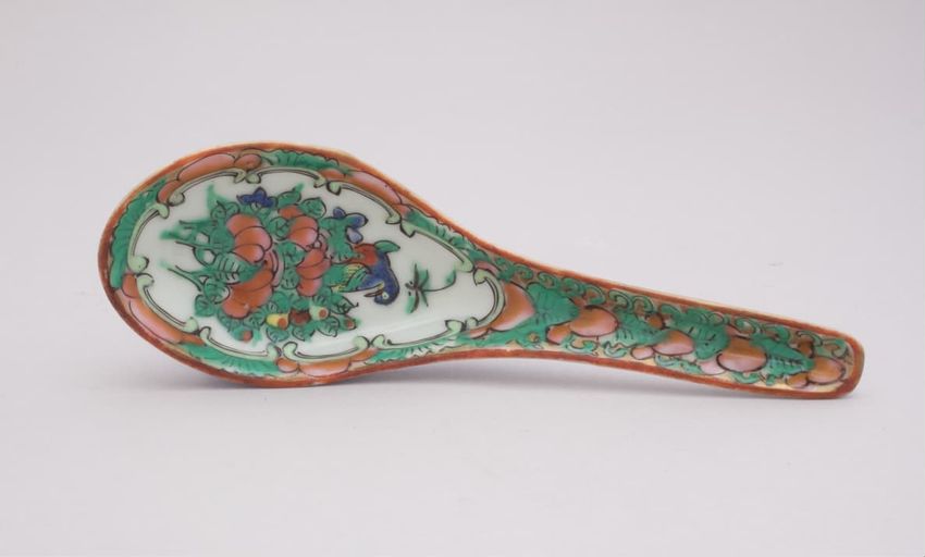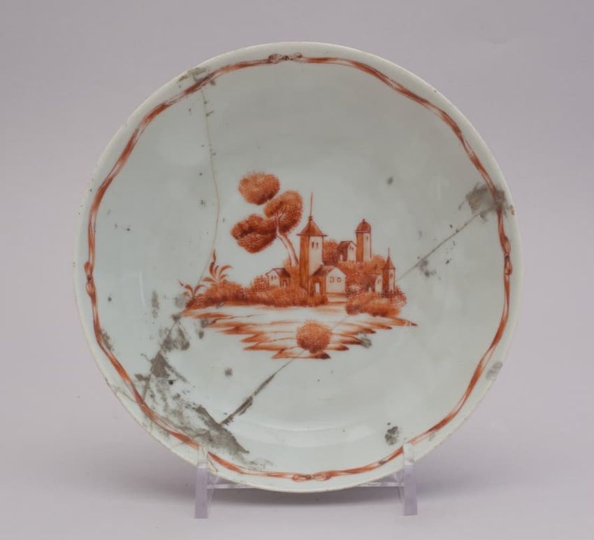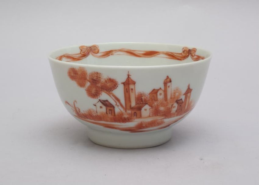 Brown check, white linen tape along center-front, hem, sleeves and pockets, bell shaped sleeves, ten pearl buttons down front.