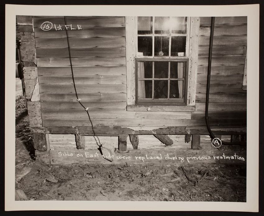 Image 15, Restoration Photos, Exterior, 1st Floor East, Foundation Sills, Saugus, Mass., ca. 1920