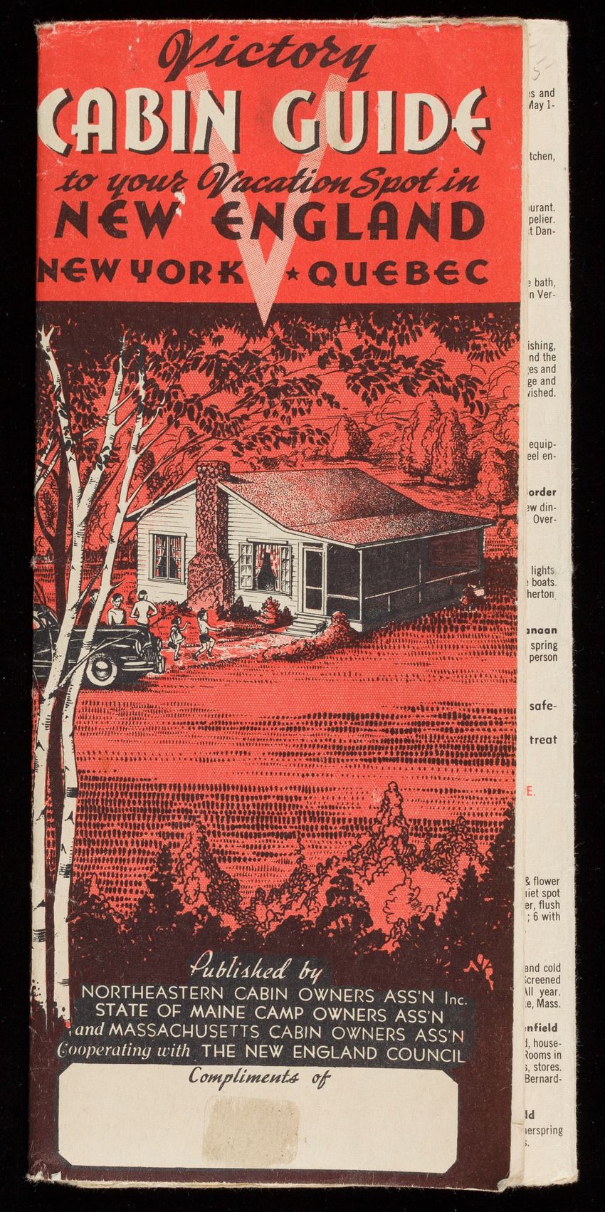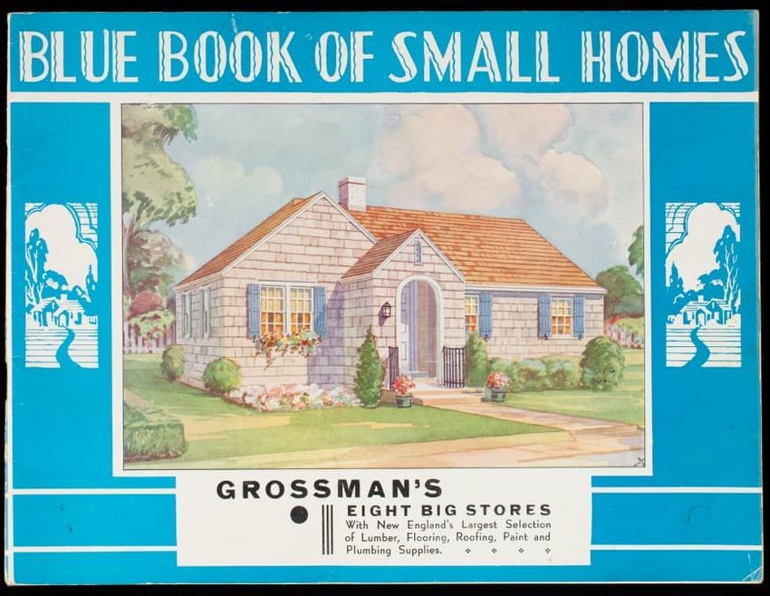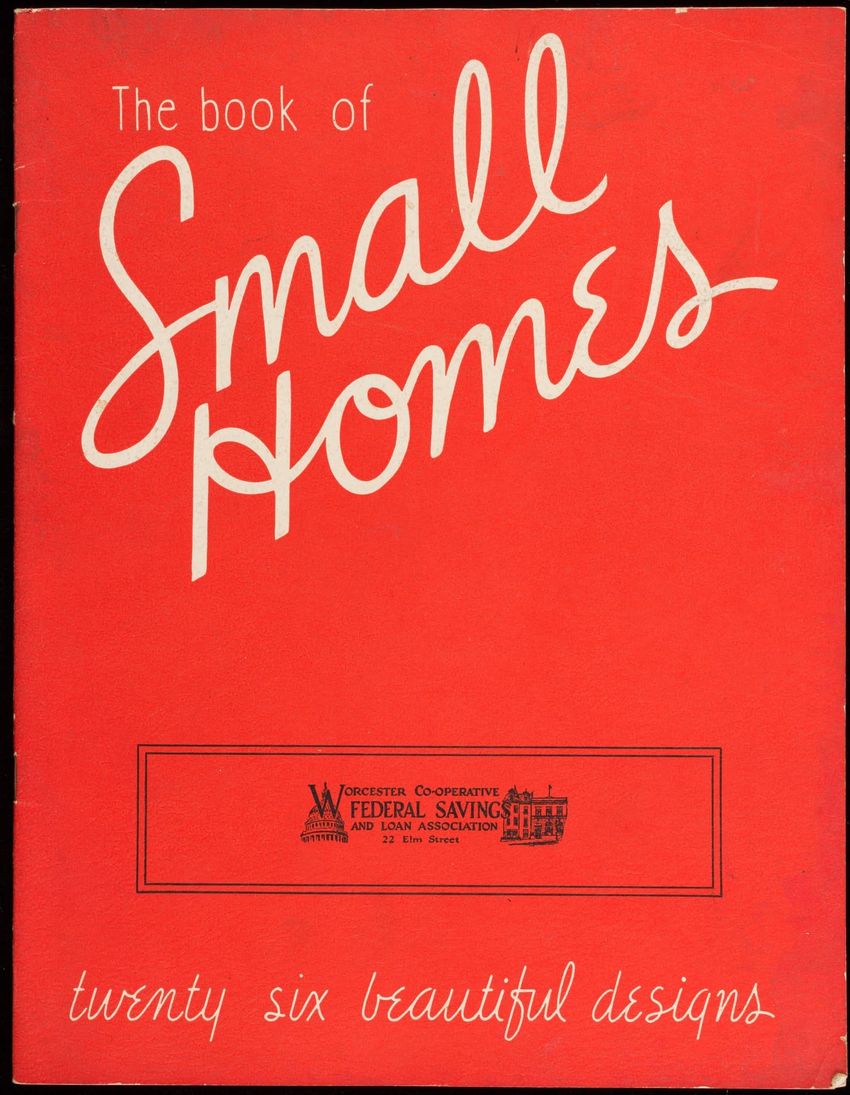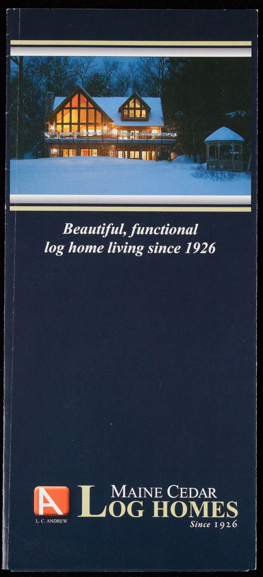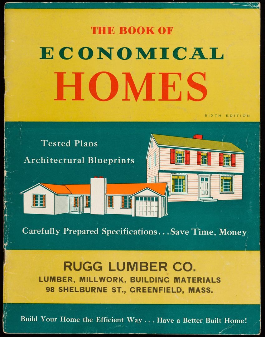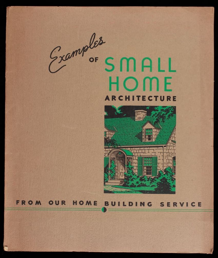 The business has cabin home plans for potential customers with accompanying illustrations and floor plans. Text on the title page reads, "New, economical, complete, American, comfortable, original, cool, attractive, marketable, portable, satisfying."
