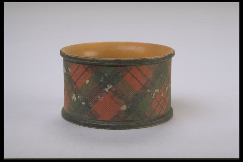 Leather wallet covered with incised scrolls, urns, medallions, and figures in maroon, purple, and blue. Snap closure. Contains Stephen Willard Phillips calling cards, stamps, and notes.