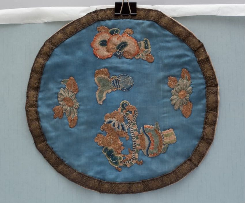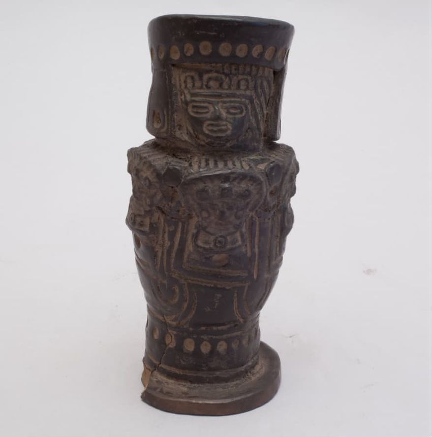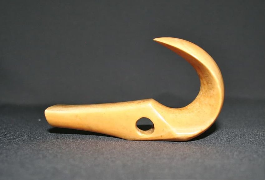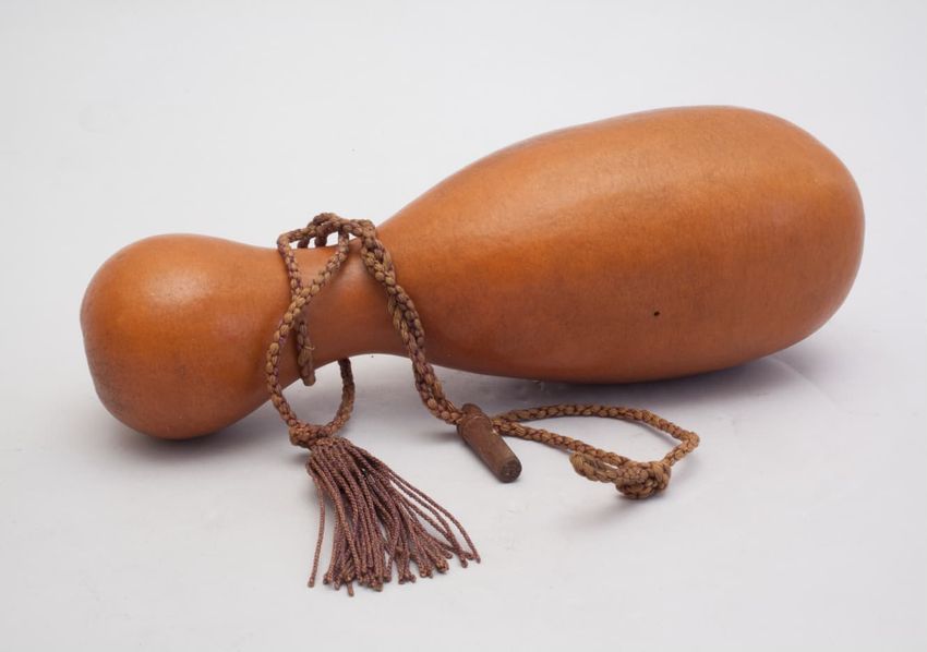 Decorated hair comb, or faa, from the Solomon Islands. The body and teeth are made from split sections of the tree fern, and the top and mid-section are intricately decorated with plaited black, natural and red plant fibers. A red resin covers portions of the comb. Faa are worn only by men.