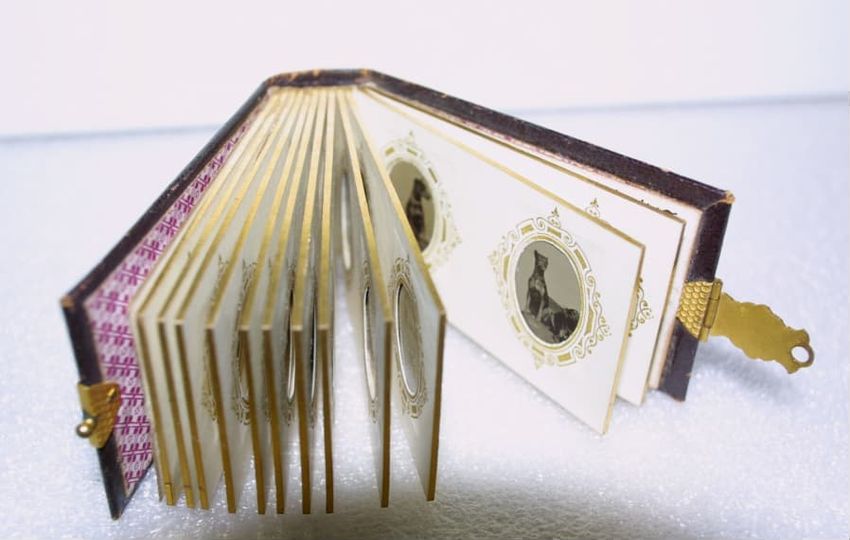 White die cast metal toy ambulance, with clear plastic front and rear windshields, black and white hubcaps, and black rubber tires. There is a steering wheel, a dashboard, and seats printed inside the interior of the ambulance. The roof of the ambulance has two siren horns, and a red plastic lamp.